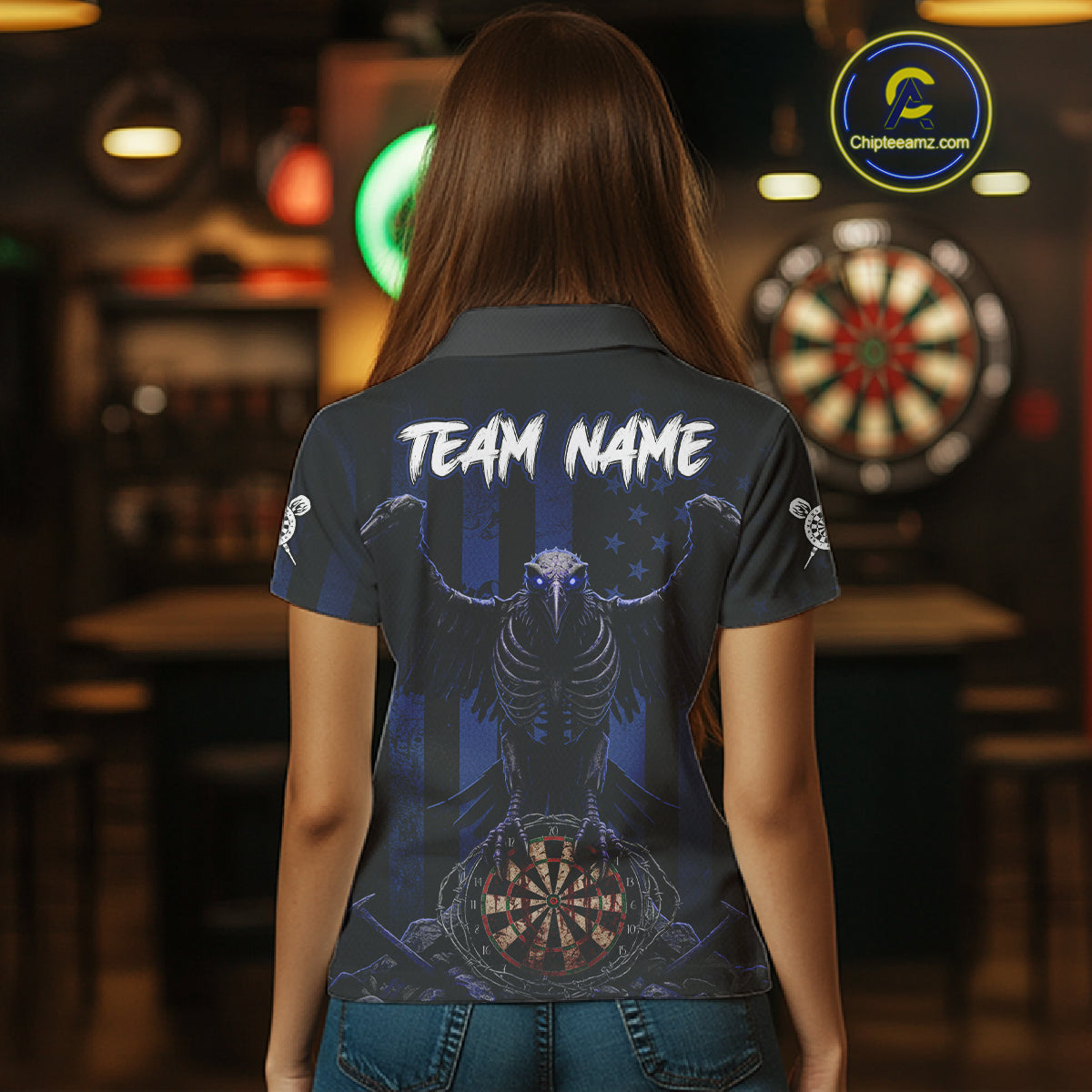 Blue Gothic Eagle Skull Dartboard Custom Women Darts Quarter-Zip Shirt Grunge US Flag Dart Jerseys NYN1944