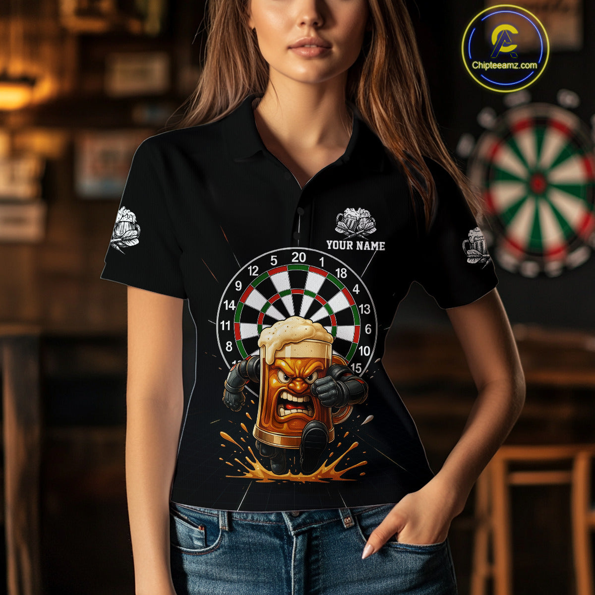 Funny Running Beer Robot & Dartboard Custom Women Darts Quarter-Zip Shirt Funny Dart Jerseys NYN1946