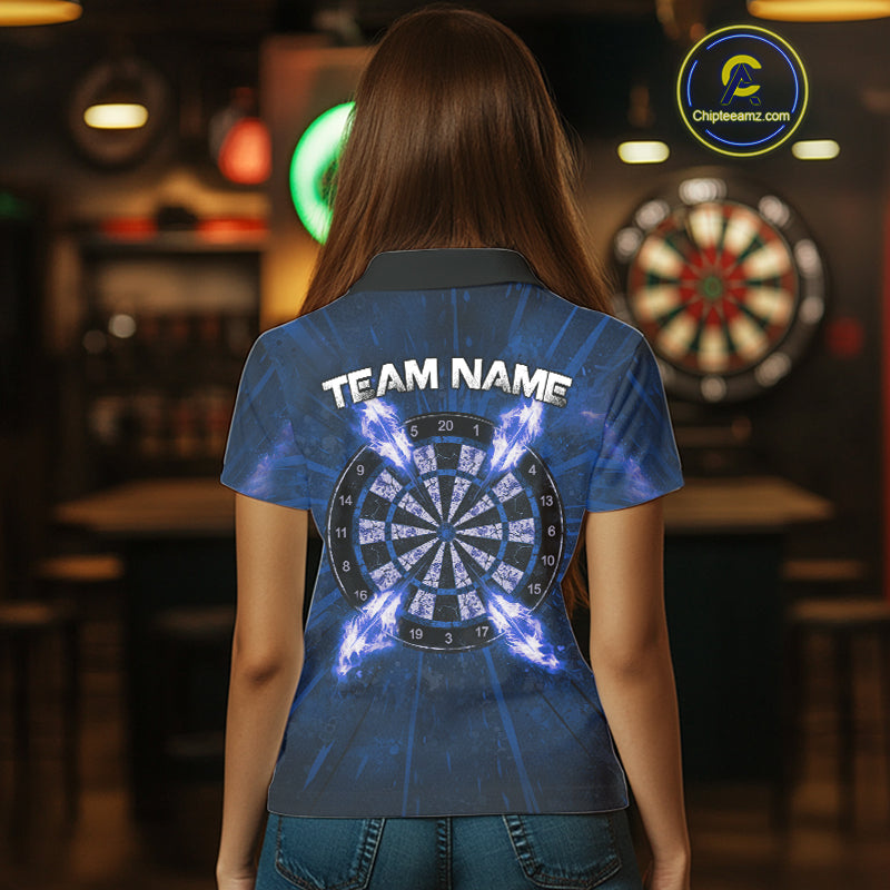 Custom Blue Flames Dart Arrow Cracked Skull Women Darts Polo Shirt Grunge Dart Gifts NYN1991