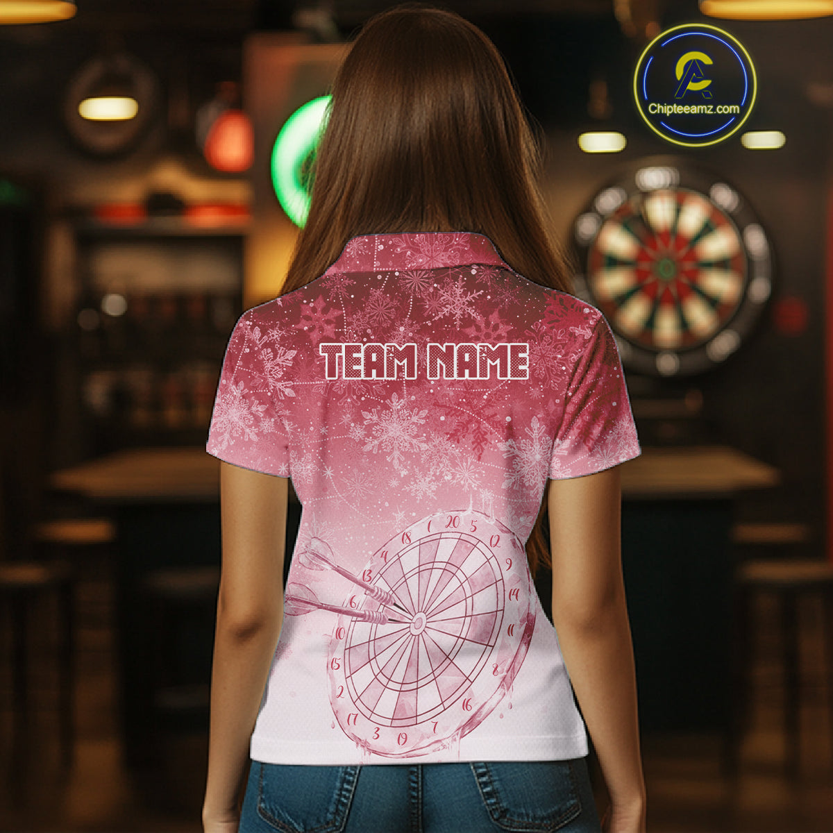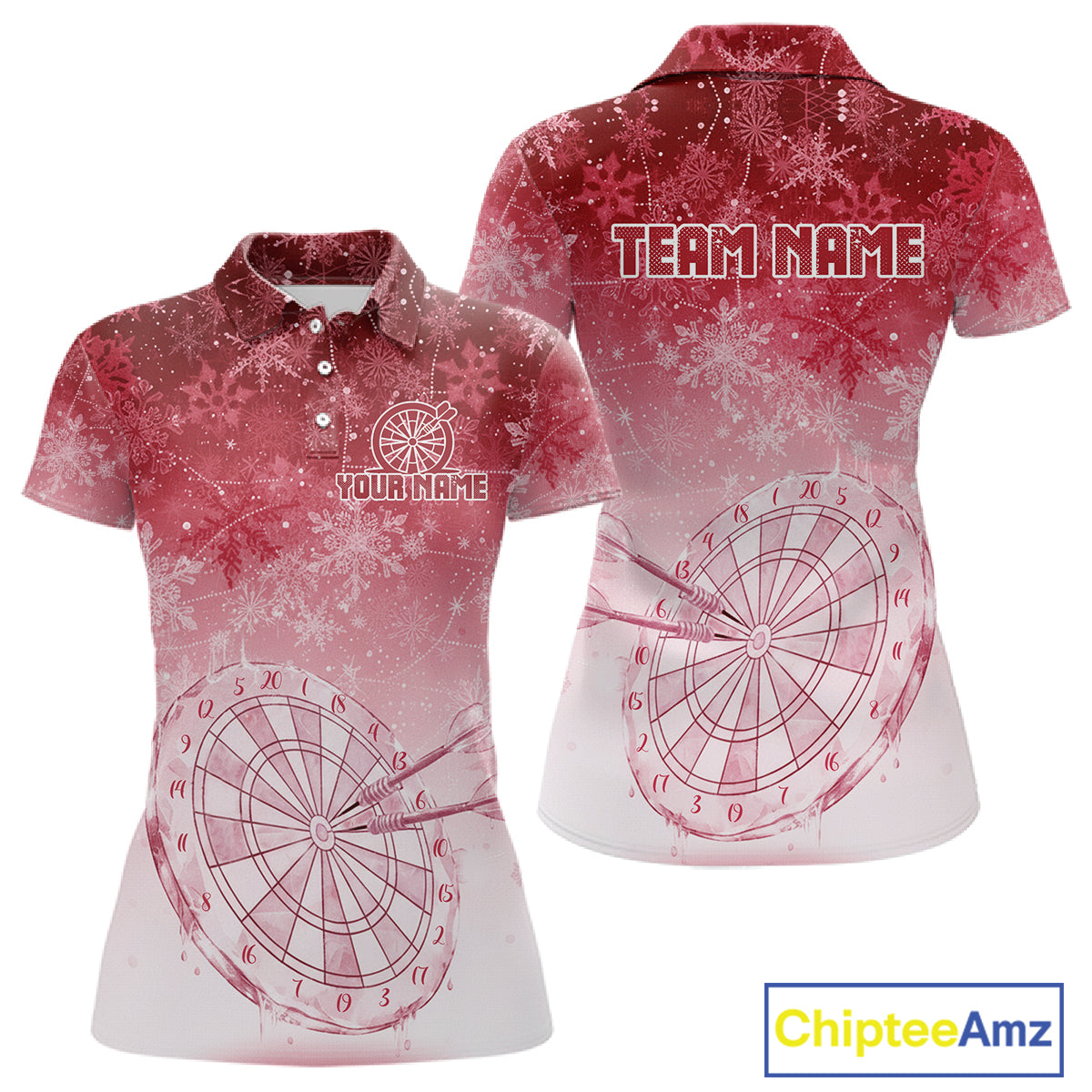 White & Red Snowflakes Ice Dartboard Custom Polo Dart Shirt For Women Xmas Dart Jerseys NYN2025