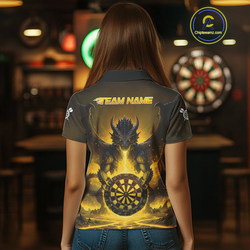 Fire Flame Dragon Yellow Darts Custom Women Darts Jersey Flaming Darts League Shirt NYN2042