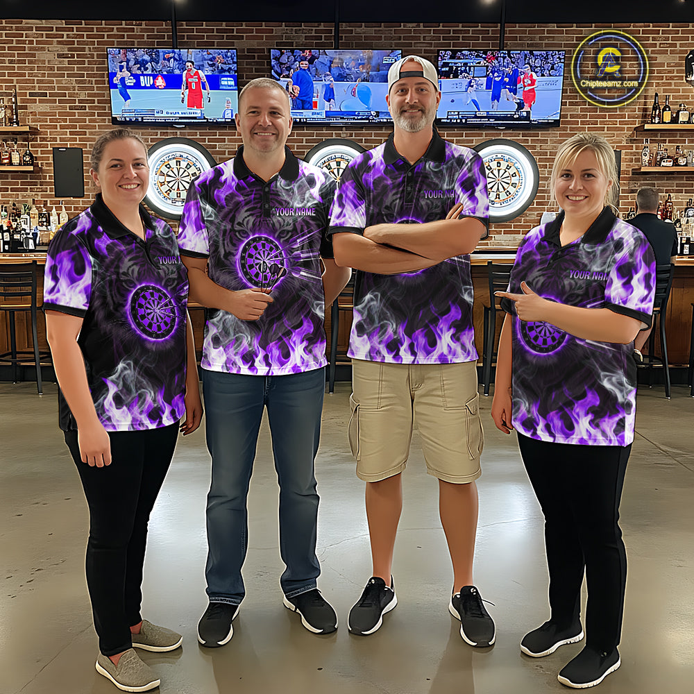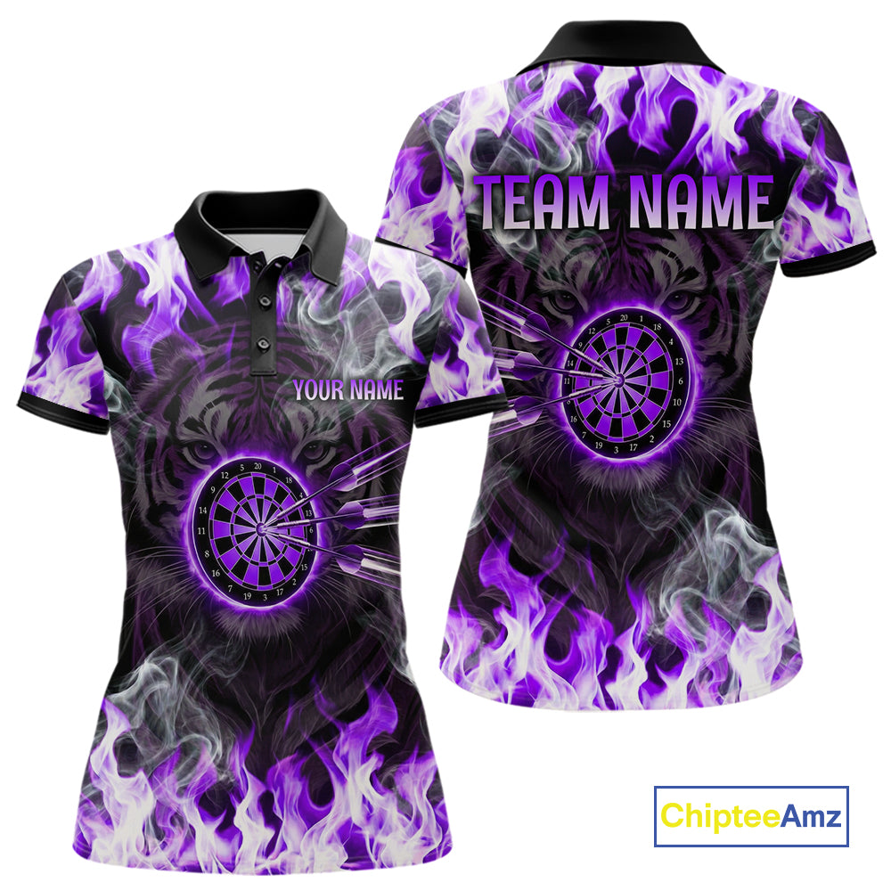 Purple Flaming Tiger Women Dart Polo Shirts Personalized Name & Team Fire Flame Dart Jerseys NYN2101