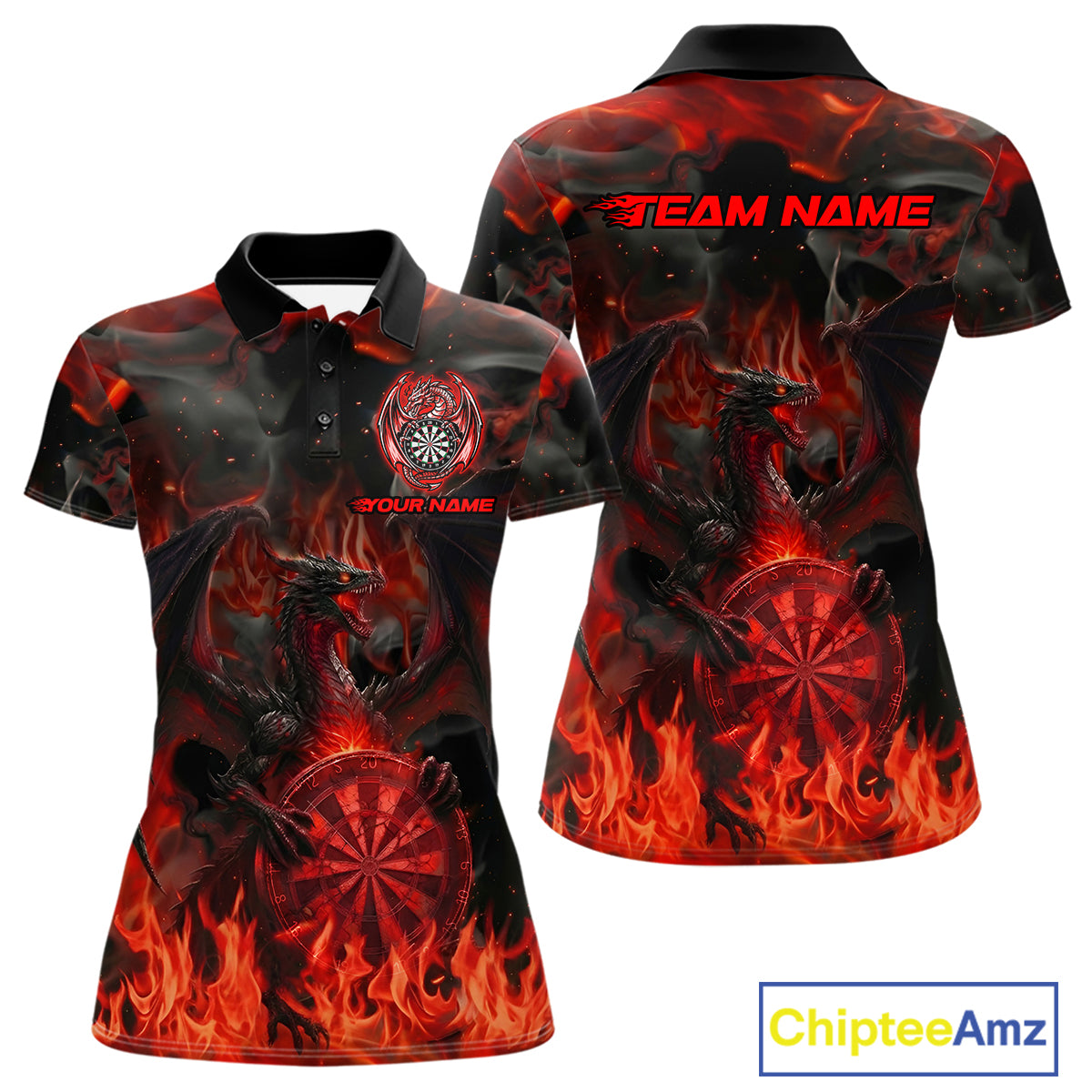 Fire Flames Darts Dragon Red Dart Polo Shirts For Women  Personalized Team Dart Jerseys NYN2104