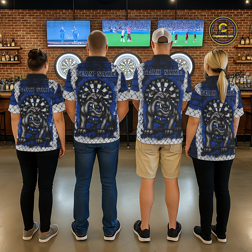 Blue Brick-Wall Fierce Bulldog Women Darts Polo Team Shirt Personalized Name For Players NYN2116