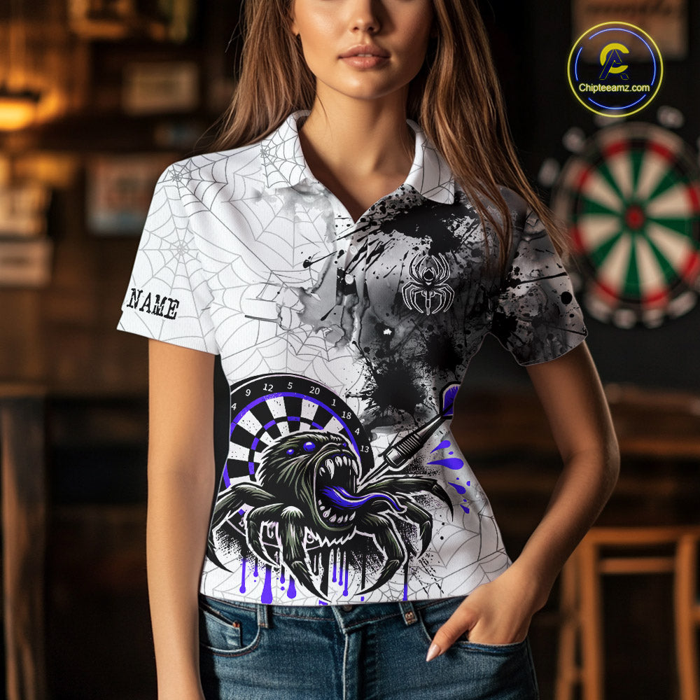 Personalized Dripping Black And Purple Spider Dart Polo Shirts For Women, Custom Dart Jerseys NYN2117
