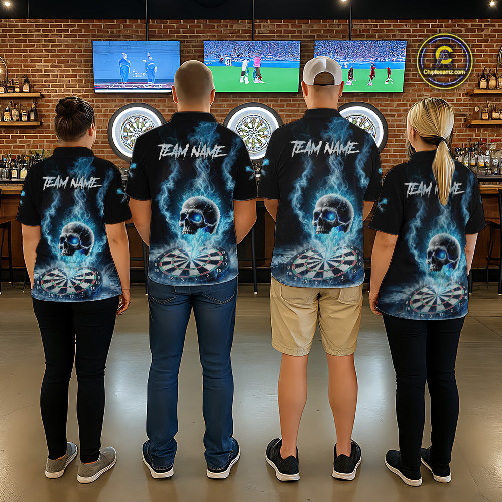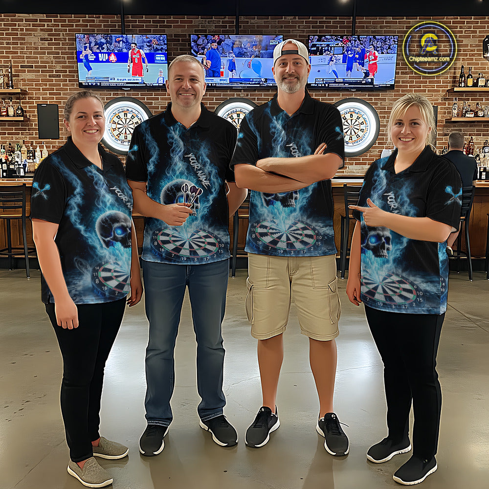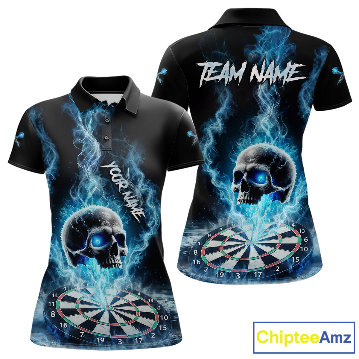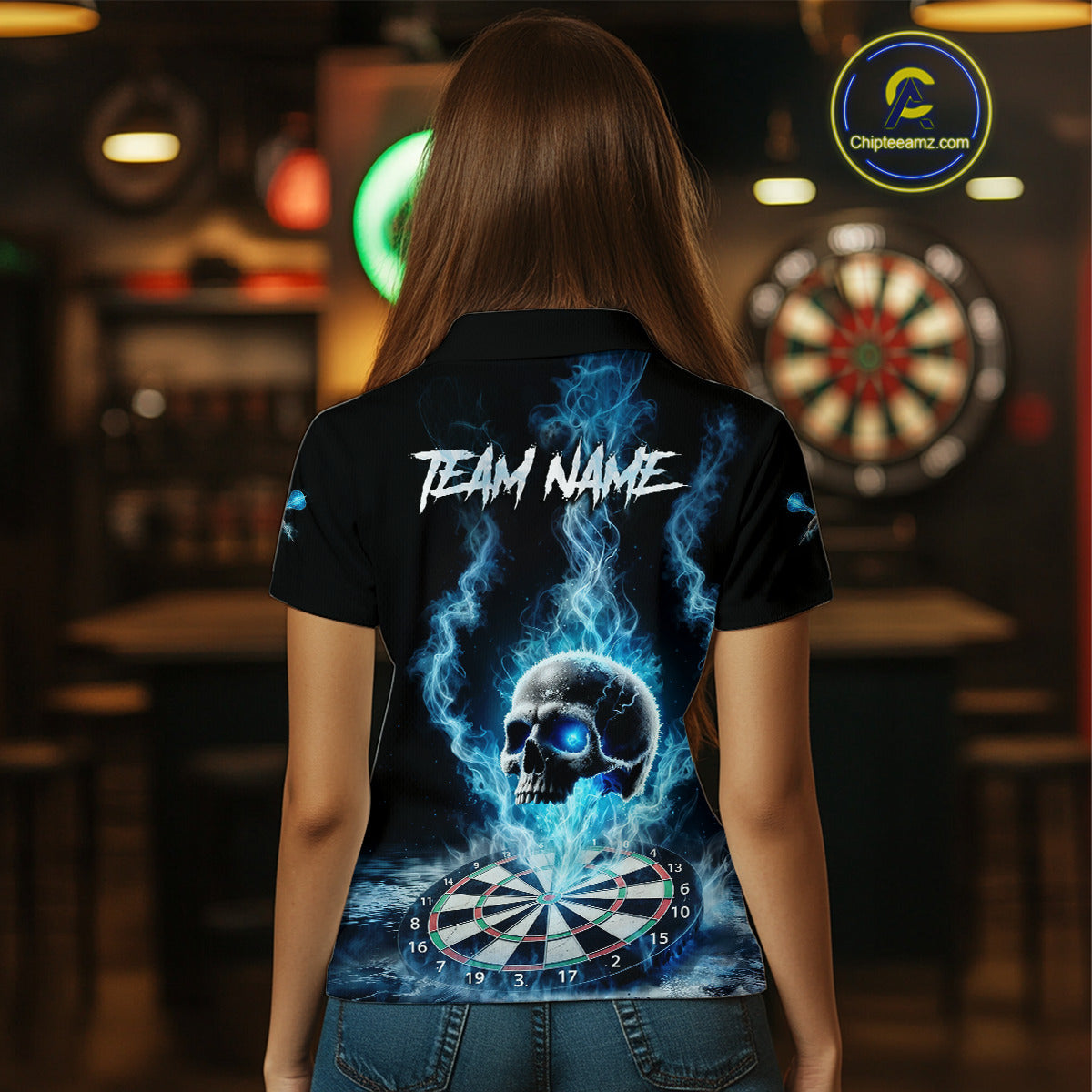 Custom Blue Ice Smoke Skull Dartboard Darts Polo Shirt For Women Dart League Jerseys NYN2122