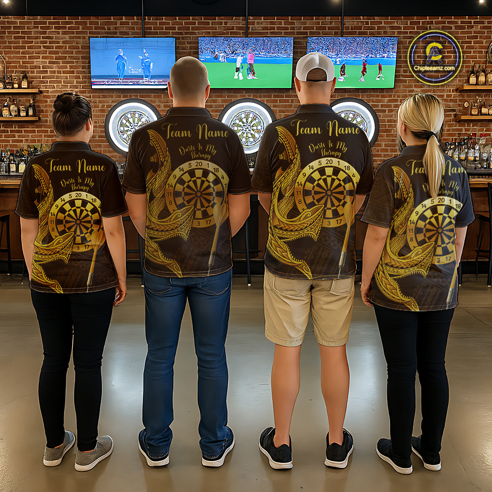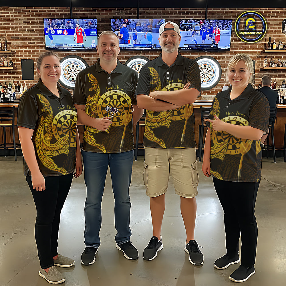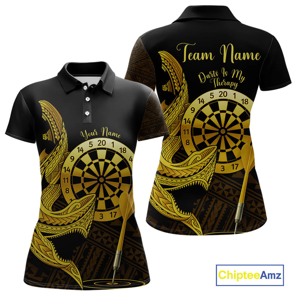 Personalized Gold Tribal Shark Custom Darts Polo Shirts For Women Tribal Dart League Jerseys NYN2183
