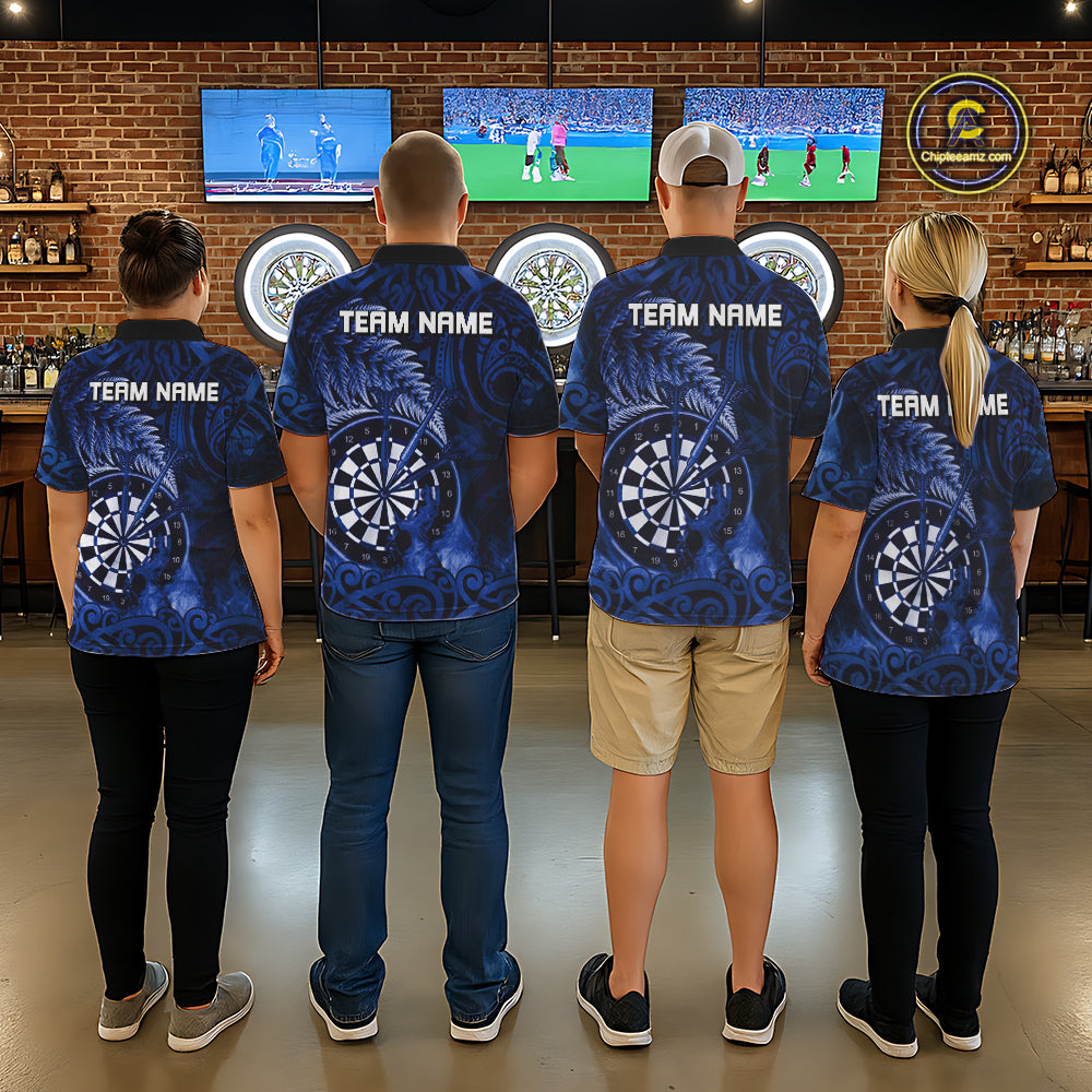 Personalized Fern Leaves Blue Fire Tribal Dart Polo Shirts For Women Dart Team Jerseys NYN2193