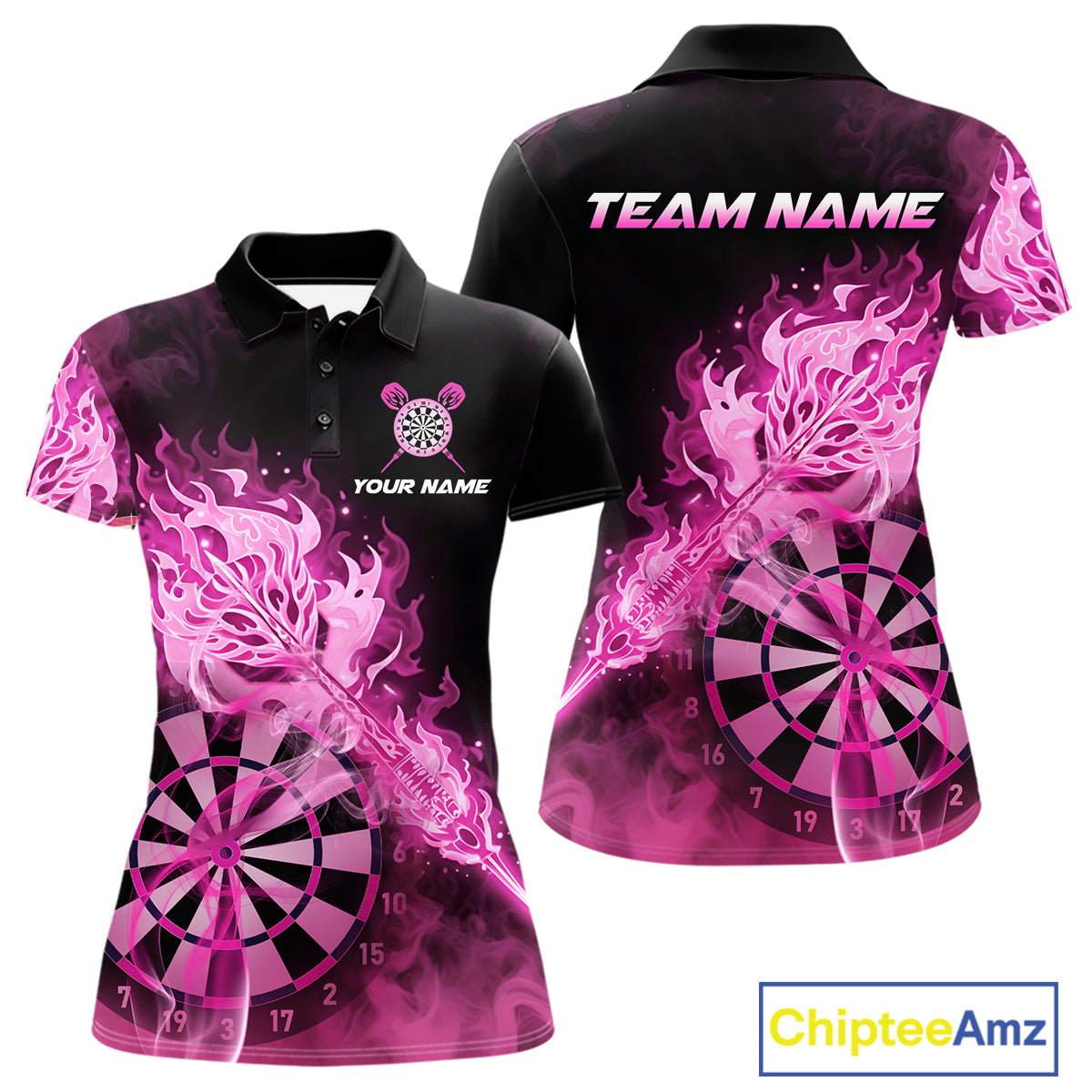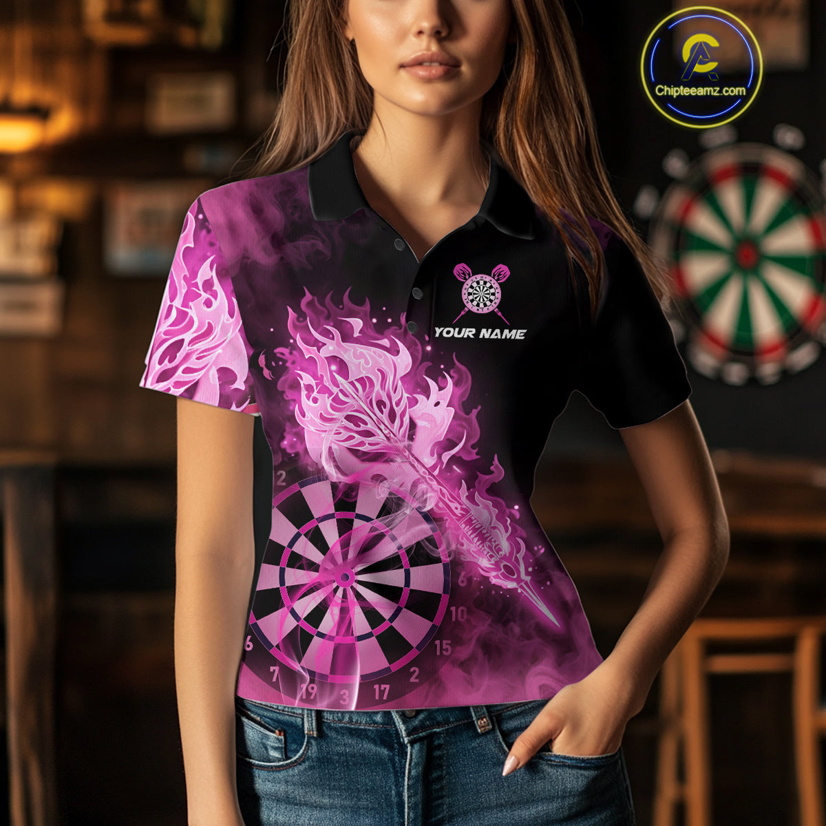 Custom Smoke Pink Fire Flaming Dart Arrow Women Darts Polo League Shirts Dart Team Jerseys NYN2213
