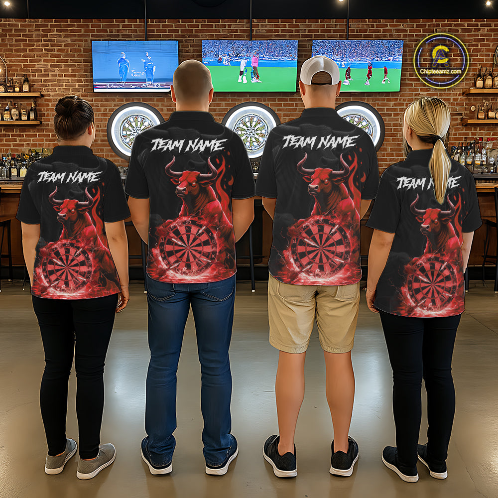 Red Funny Bull Fire Flame Dartboard Custom Women Darts Polo League Shirts Dart Jerseys NYN2244