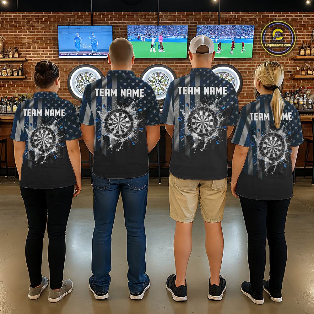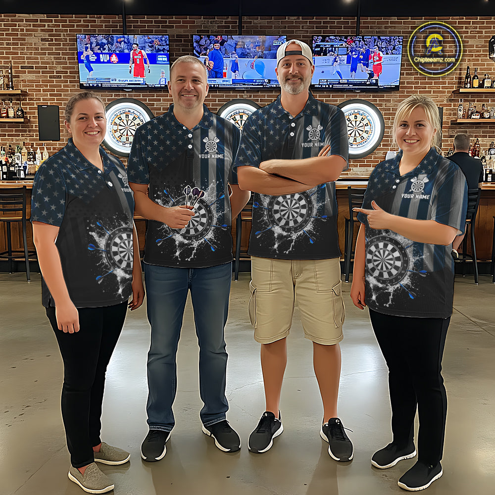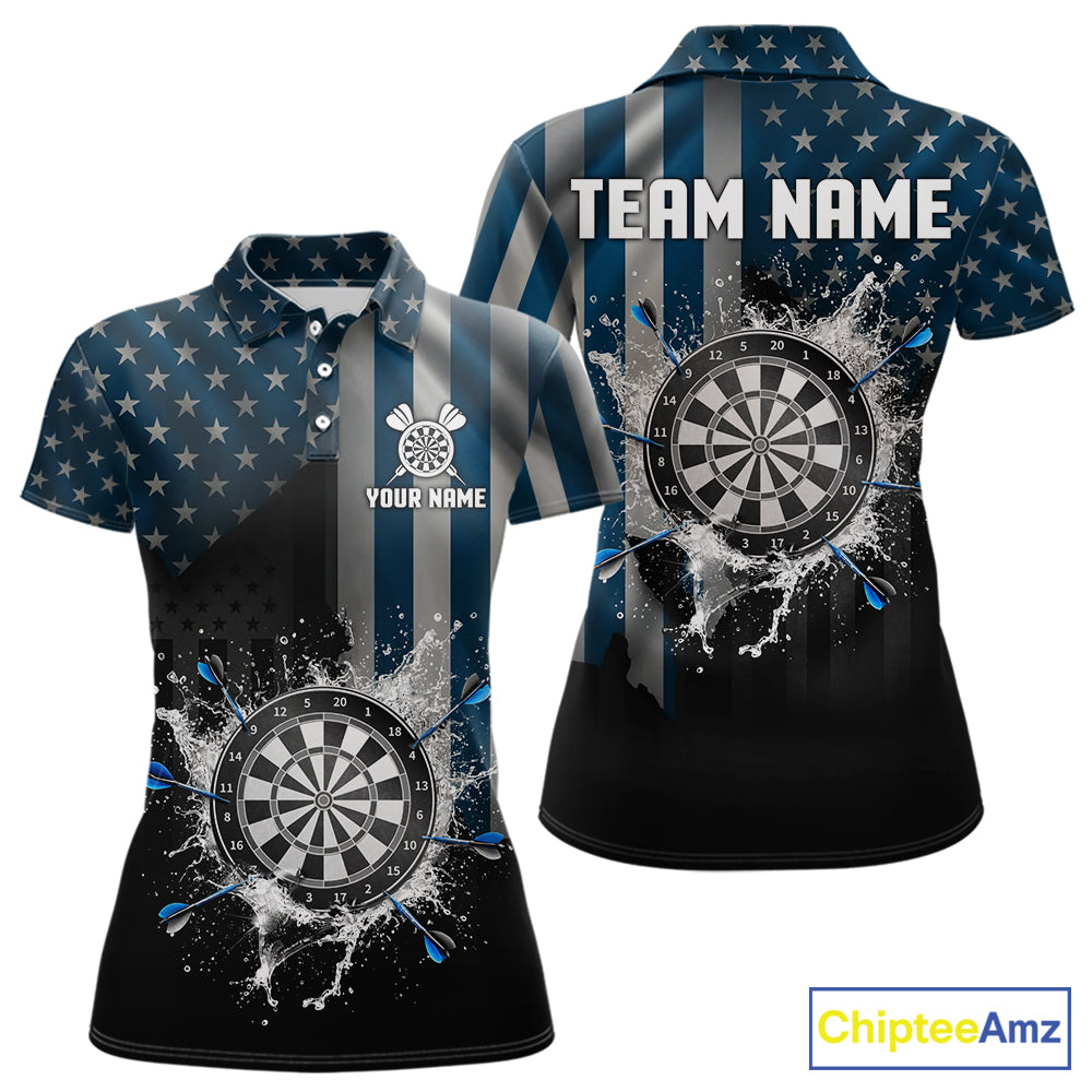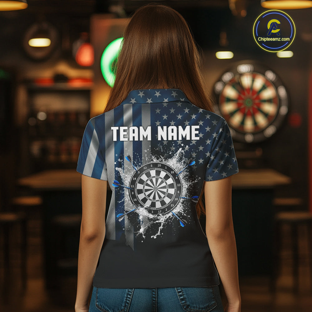Custom Blue US Flag Water Dartboard Women Darts Polo League Shirts Patriotic Dart Jerseys NYN2246