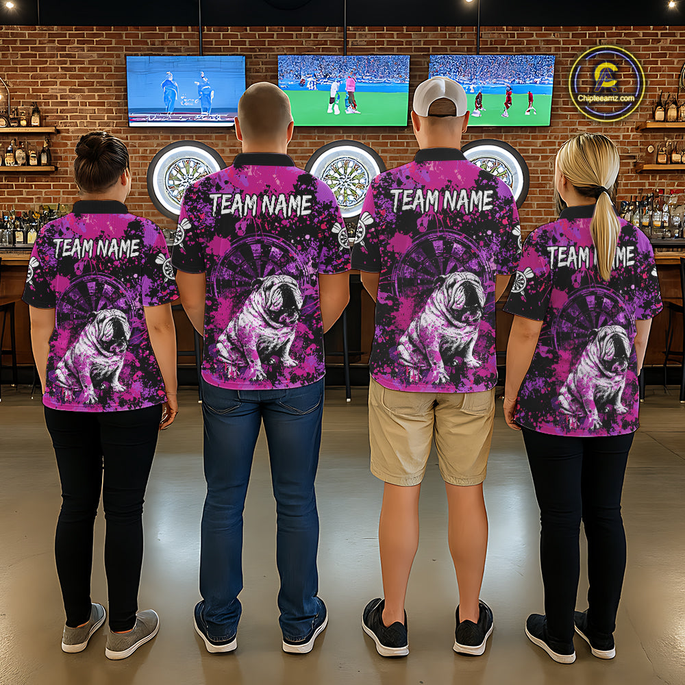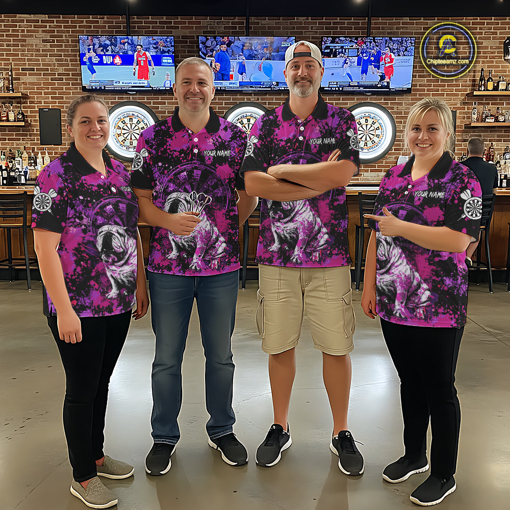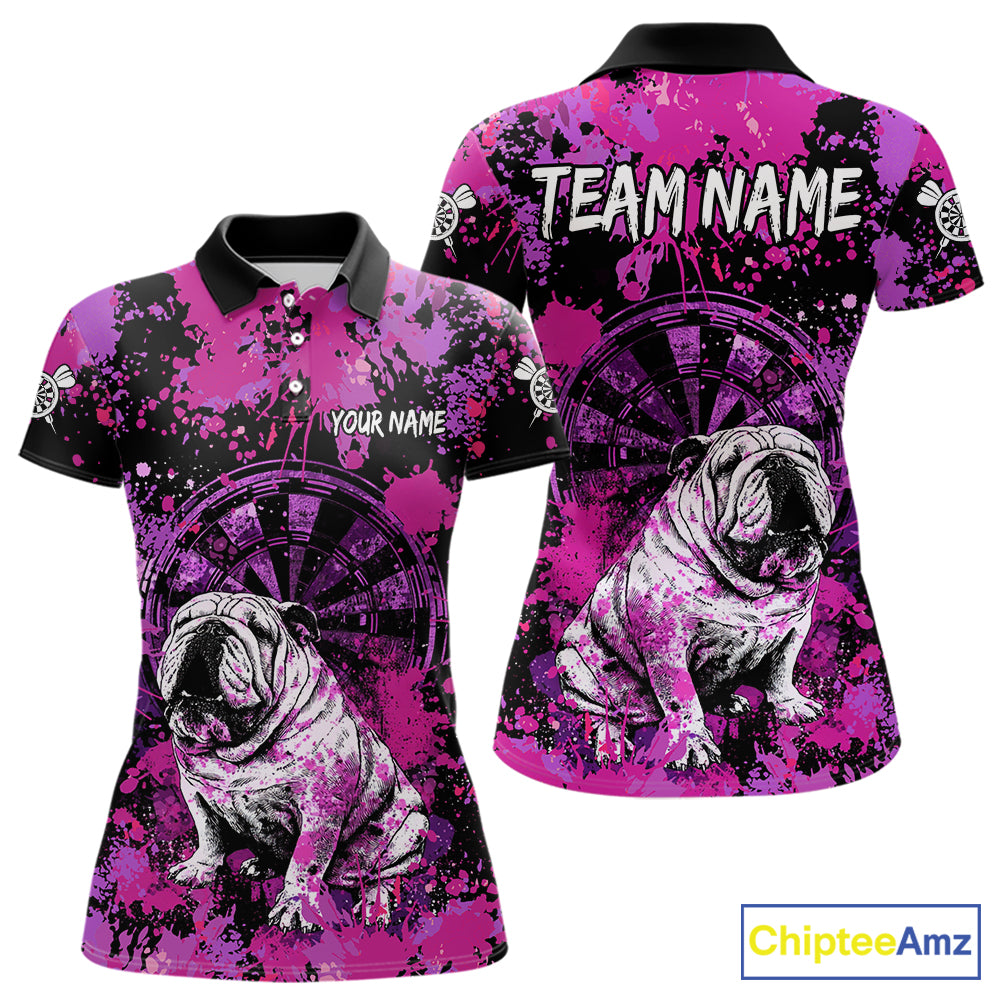 Custom Purple Splash Funny Bulldog Women Darts Polo League Shirts Splatter Dart Team Jerseys NYN2254