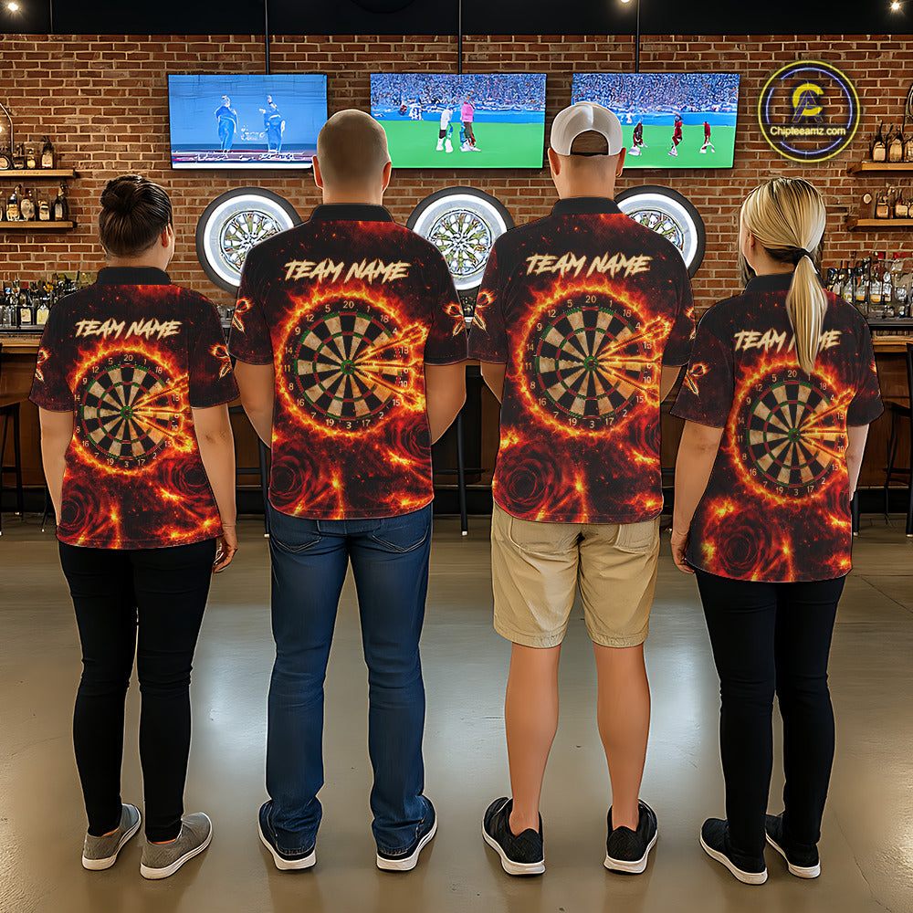 Red Flaming Roses Dartboard & Arrow Custom Women Darts Polo Shirts Fire Flame Dart Jerseys NYN2264