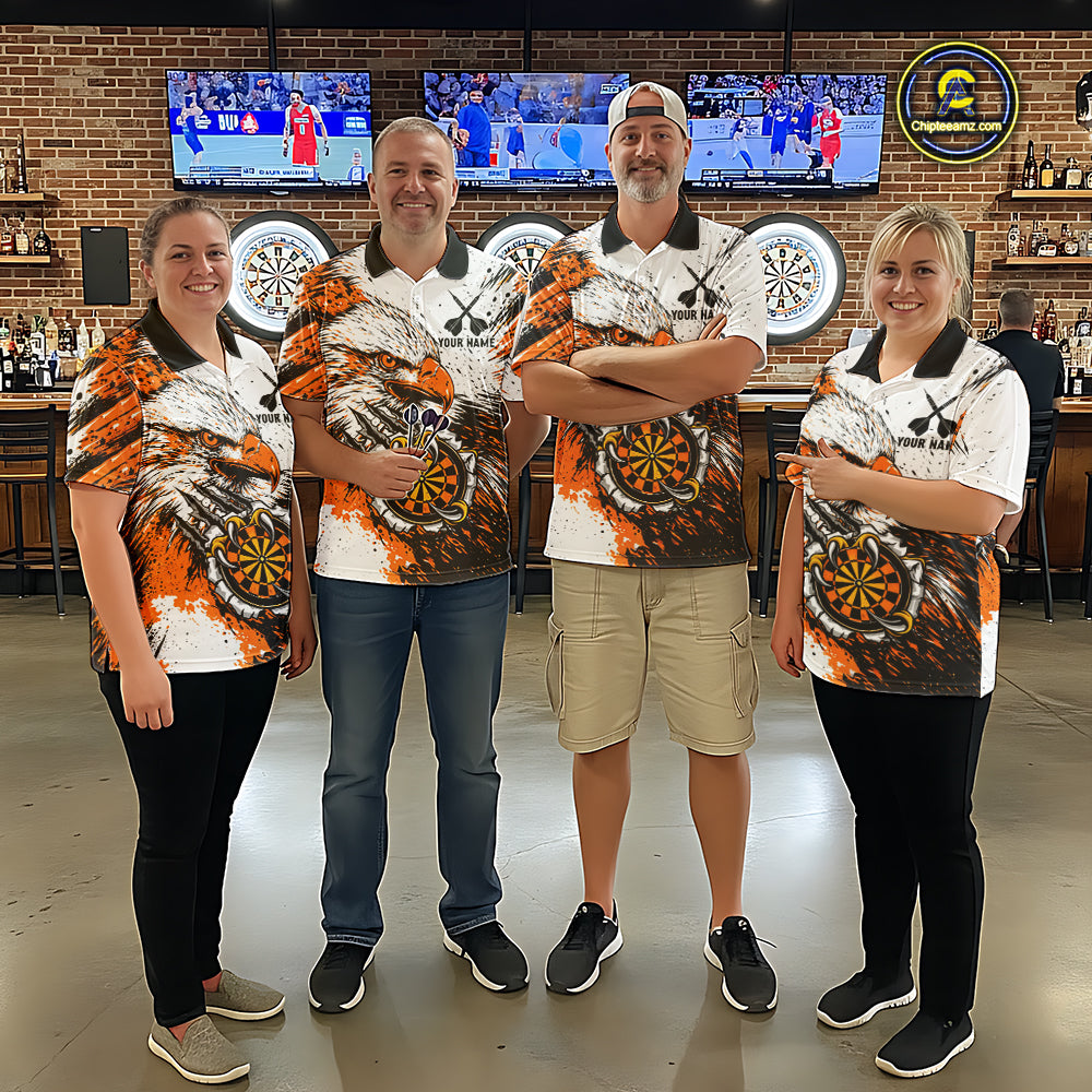 Custom Orange Grunge Eagle Scratch Dartboard Women Darts Polo Shirts Dart Team Jerseys NYN2271
