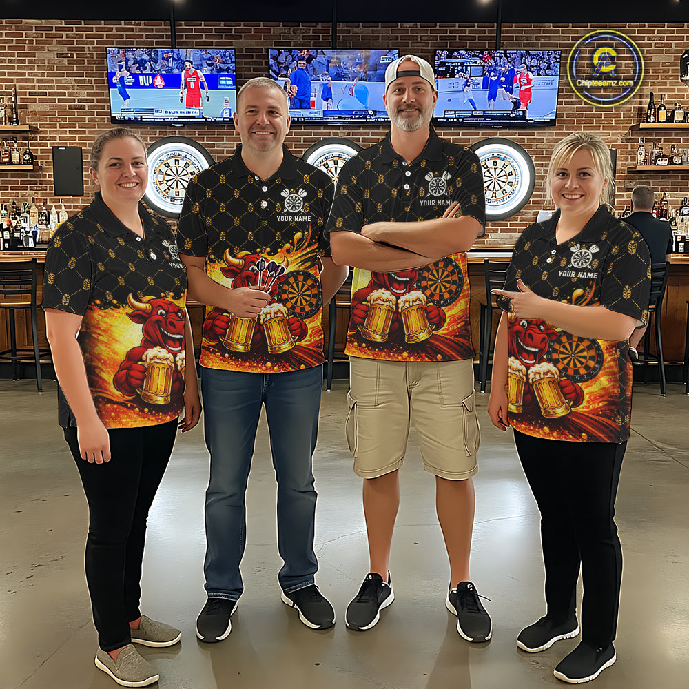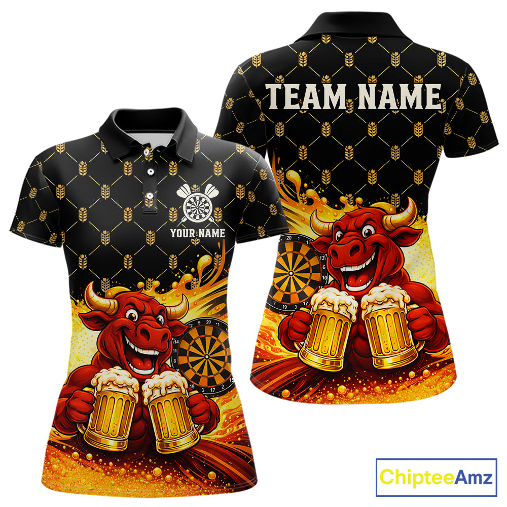 Bull & Cheer Beers Dartboard Custom Funny Darts Polo Shirts Women Dart Team Jerseys | Black NYN2272