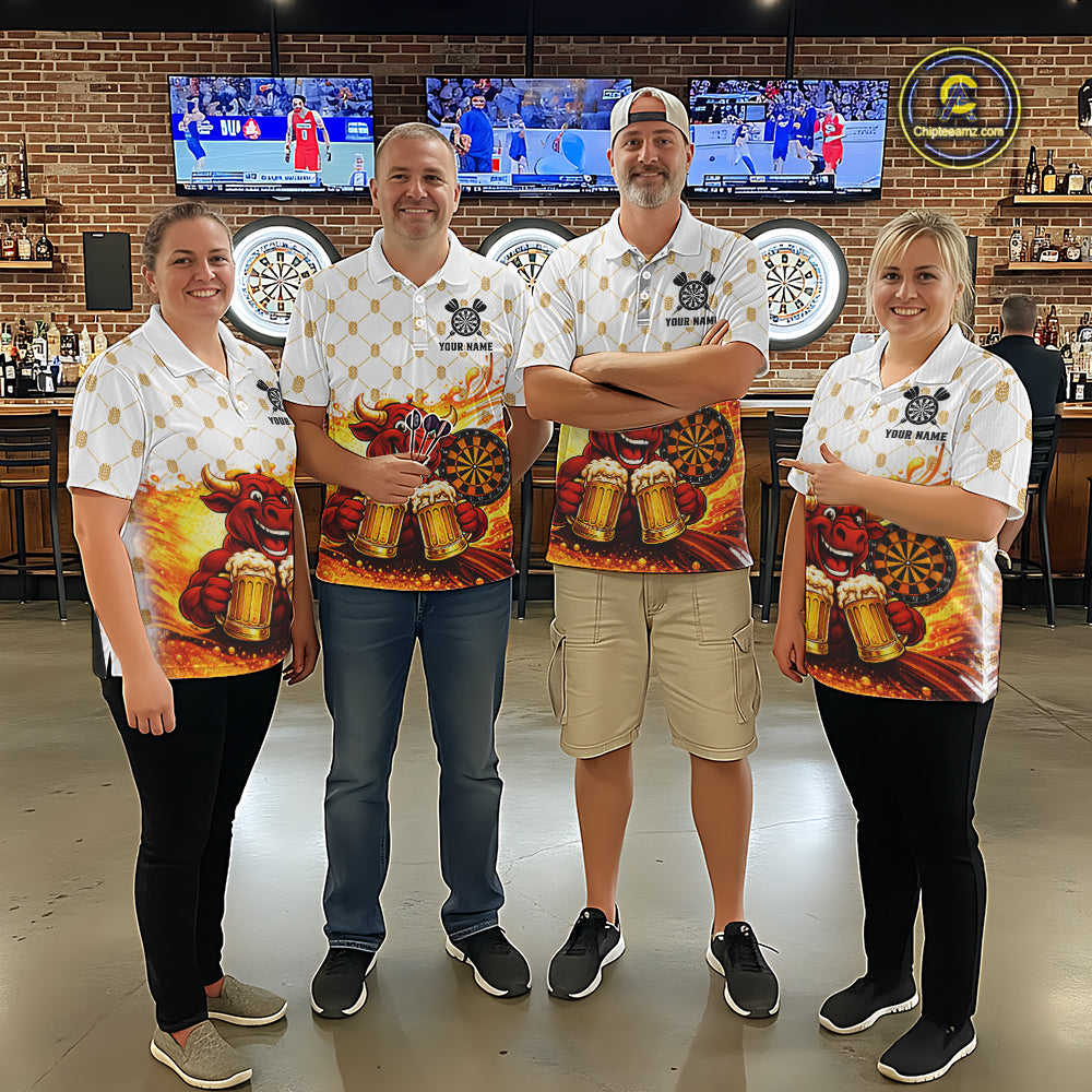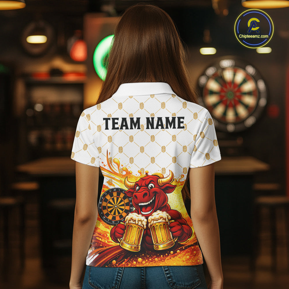 Bull & Cheer Beers Dartboard Custom Funny Darts Polo Shirts Women Dart Team Jerseys | White NYN2273