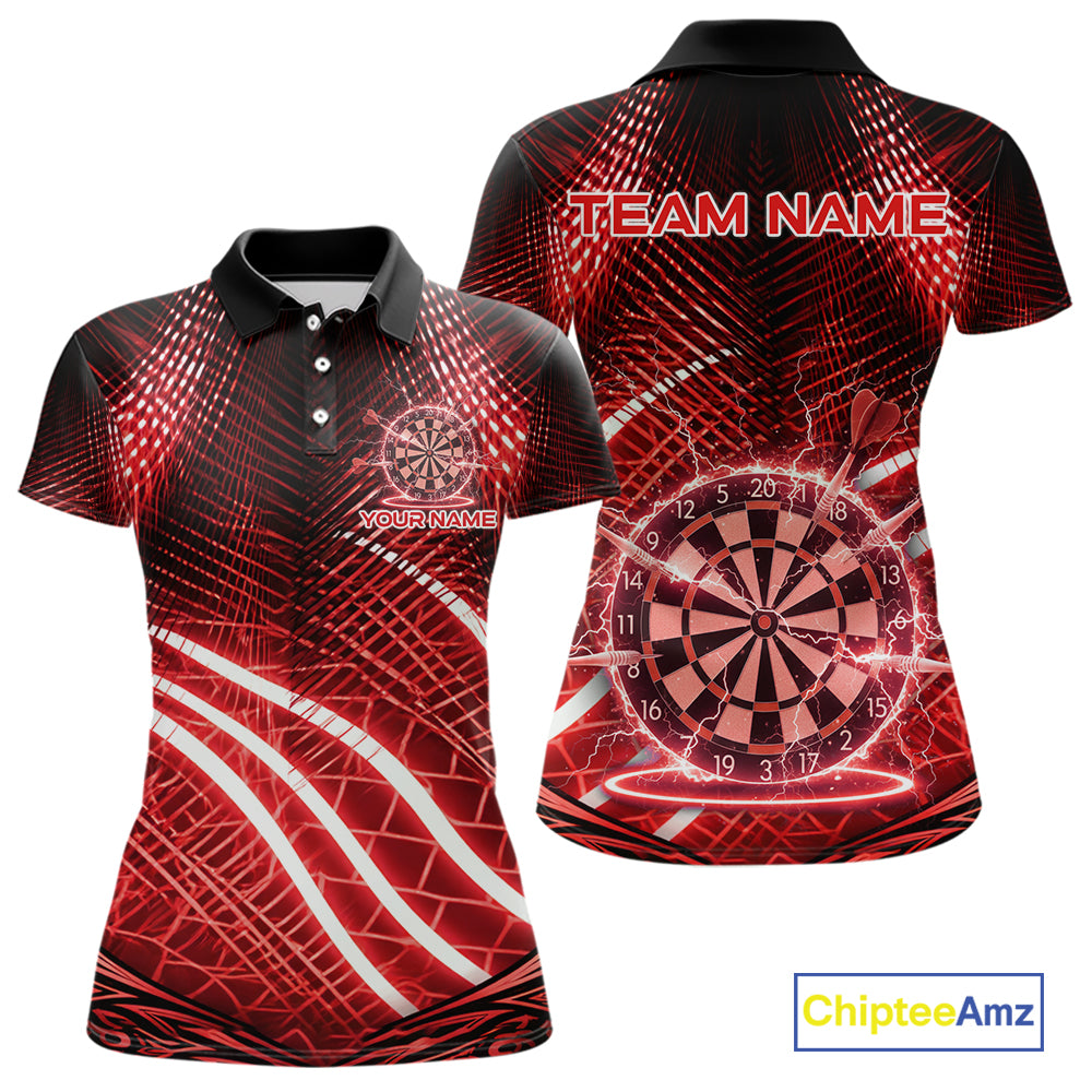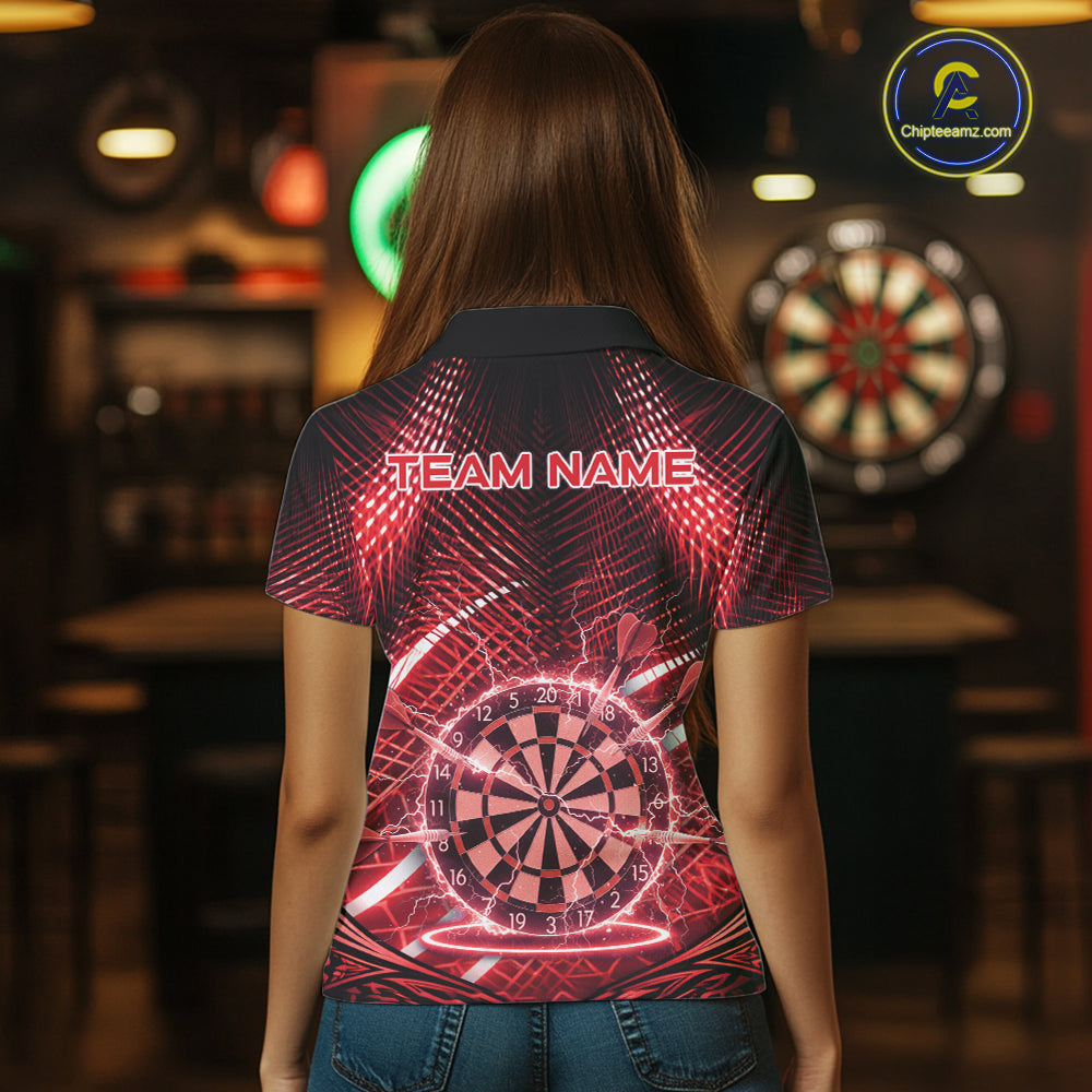 Black And Red Stripes Light Dartboard Custom Darts Polo Shirts Women Dart Team Jerseys NYN2276