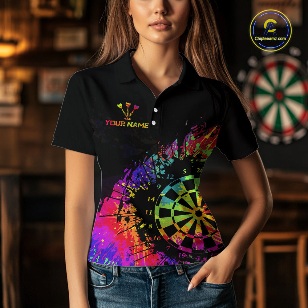 Colorful Splatter Dartboard Grunge Dart Polo Shirts For Women Custom Name For Darters NYN2281