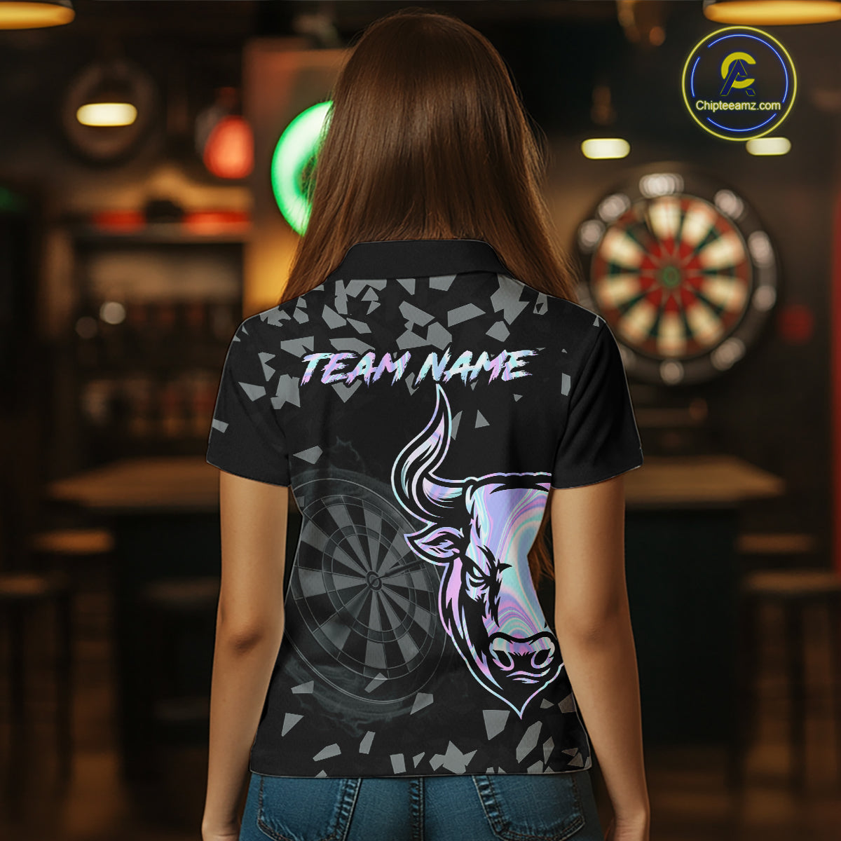 Bull & Dartboard Custom Grunge Women Darts Polo Shirt Holographic Darts Team Jersey NYN2353