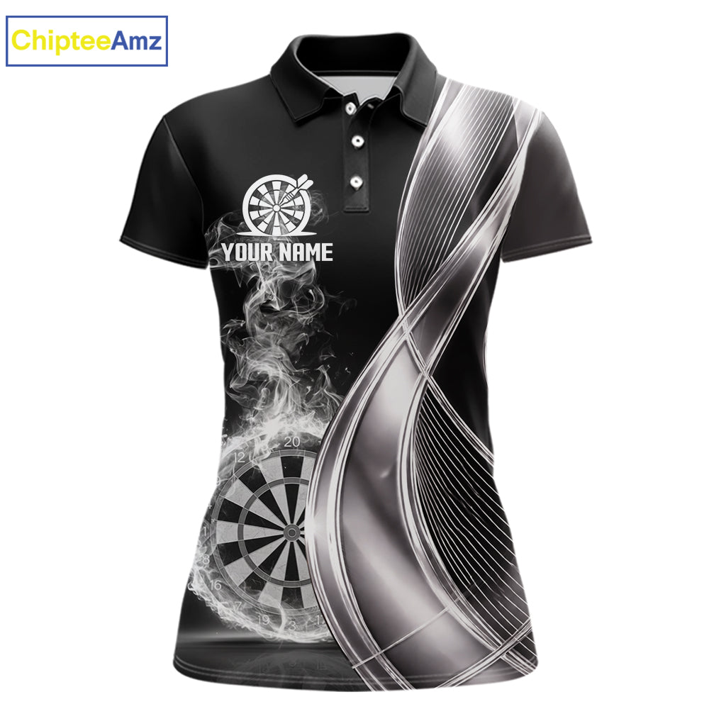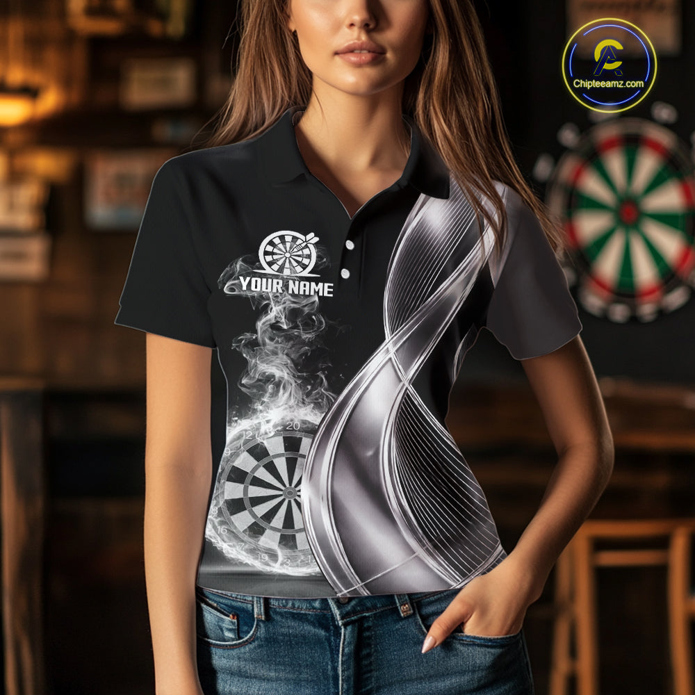 Black And Silver Darts Polo Shirts For Women Custom White Smoke Dartboard Dart Team Jerseys NYN2446