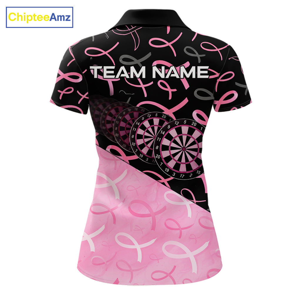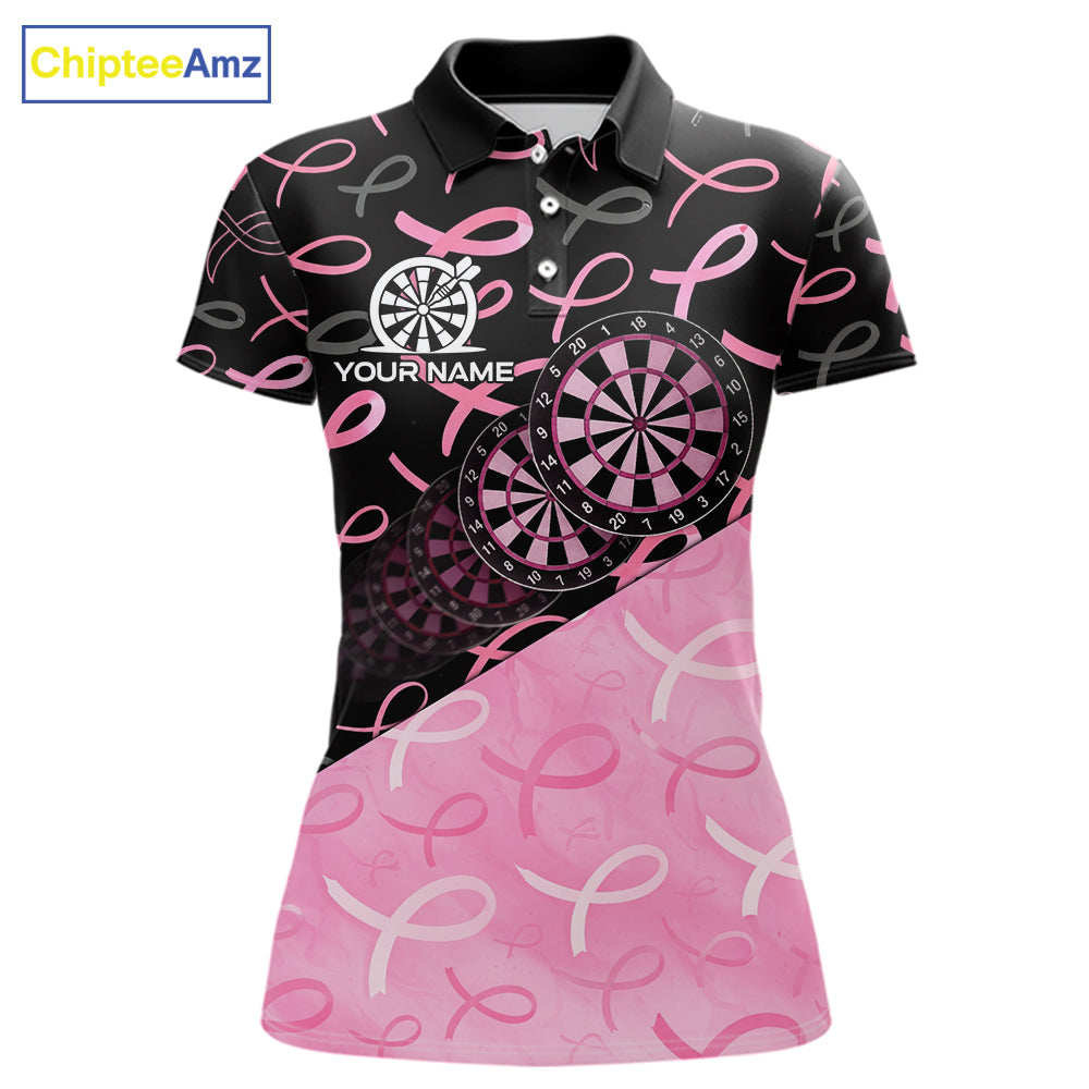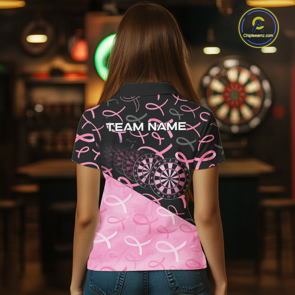 Pink Black Ribbon Blur Dartboard Custom Breast Cancer Awareness Dart Polo Team Shirt For Women NYN2450