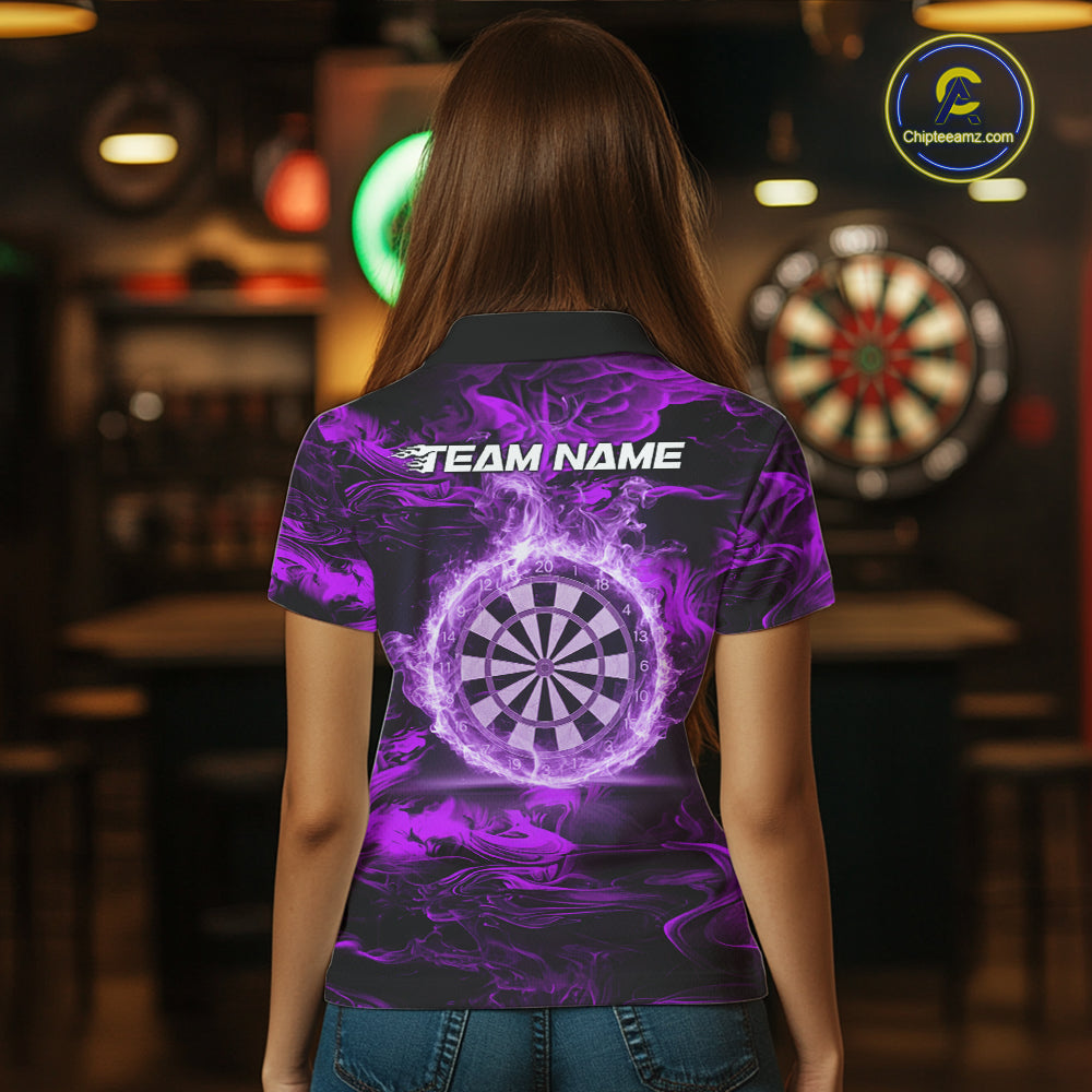 Black And Purple Smoking Dartboard & Arrow Women Darts Polo Shirt Custom Dart Team Jerseys NYN2512