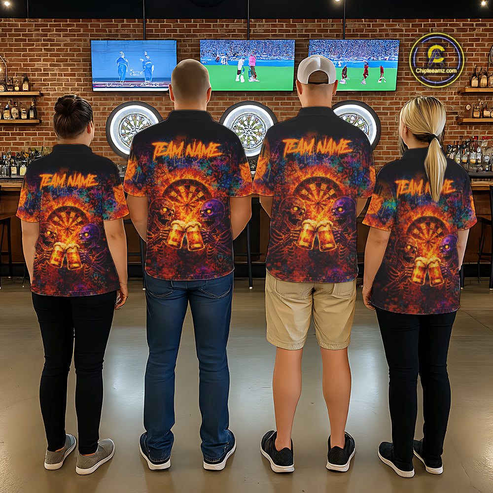 Funny Skeleton Cheer Beer Flame Women Darts Polo Shirt Custom Graffiti Dart Team Jerseys NYN2513