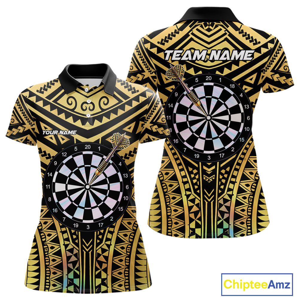 Gold Tribal Holographic Dartboard & Arrow Women Darts Polo Shirt Personalized Dart Team Jerseys NYN2515