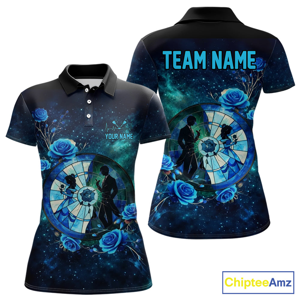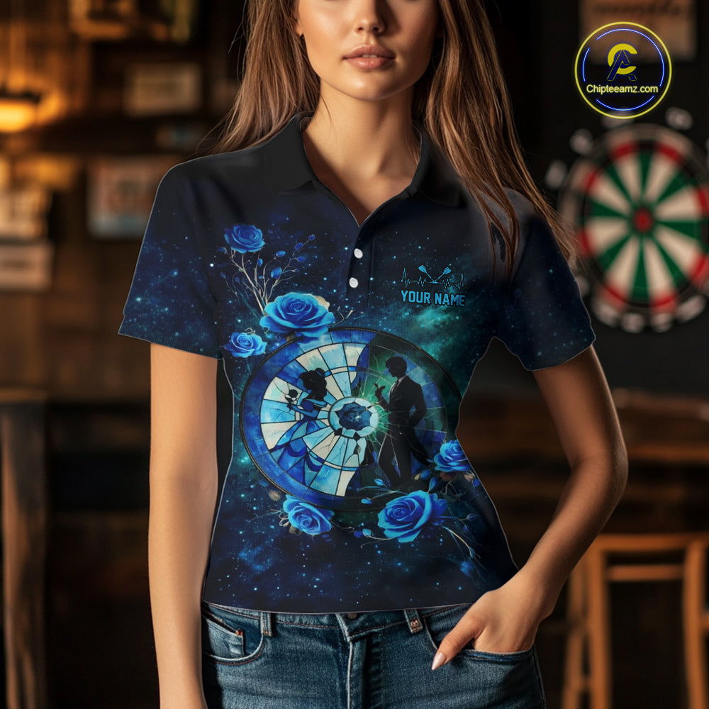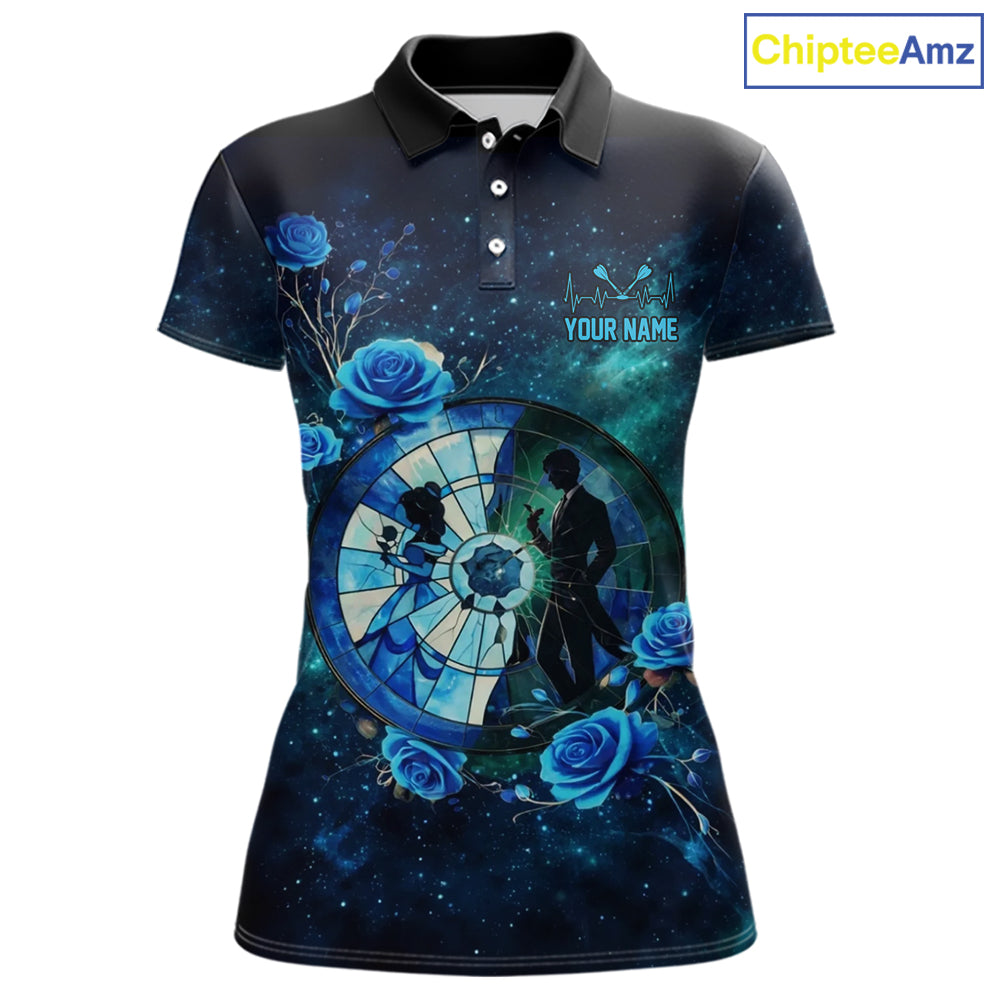 Blue Galaxy Roses Groom & Bride Dartboard Women Darts Polo Shirt Custom Valentine Dart Couple Gifts NYN2516