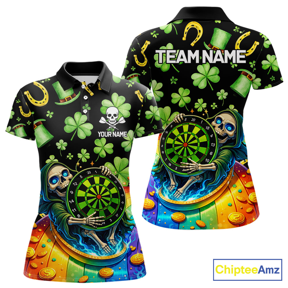 Rainbow Funny Skeleton Green Dartboard Women Darts Polo Shirt Custom St Patrick's Day Darts Jersey NYN2533