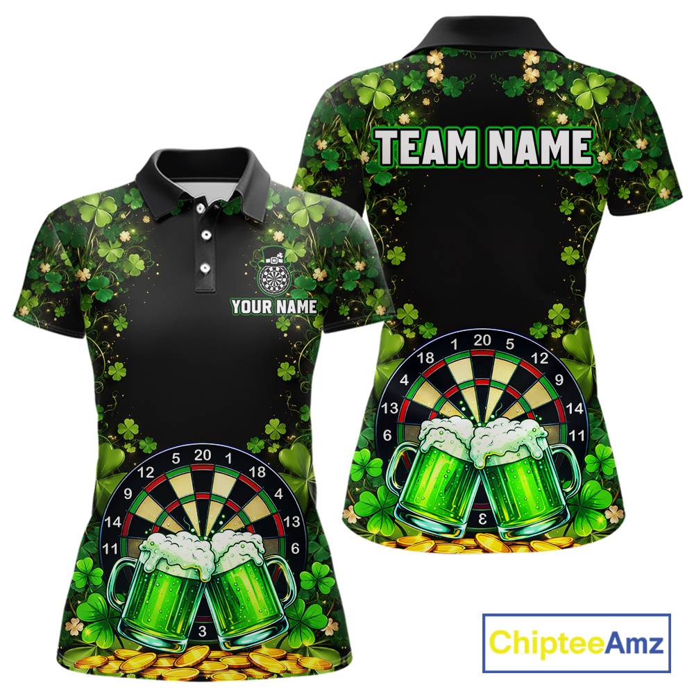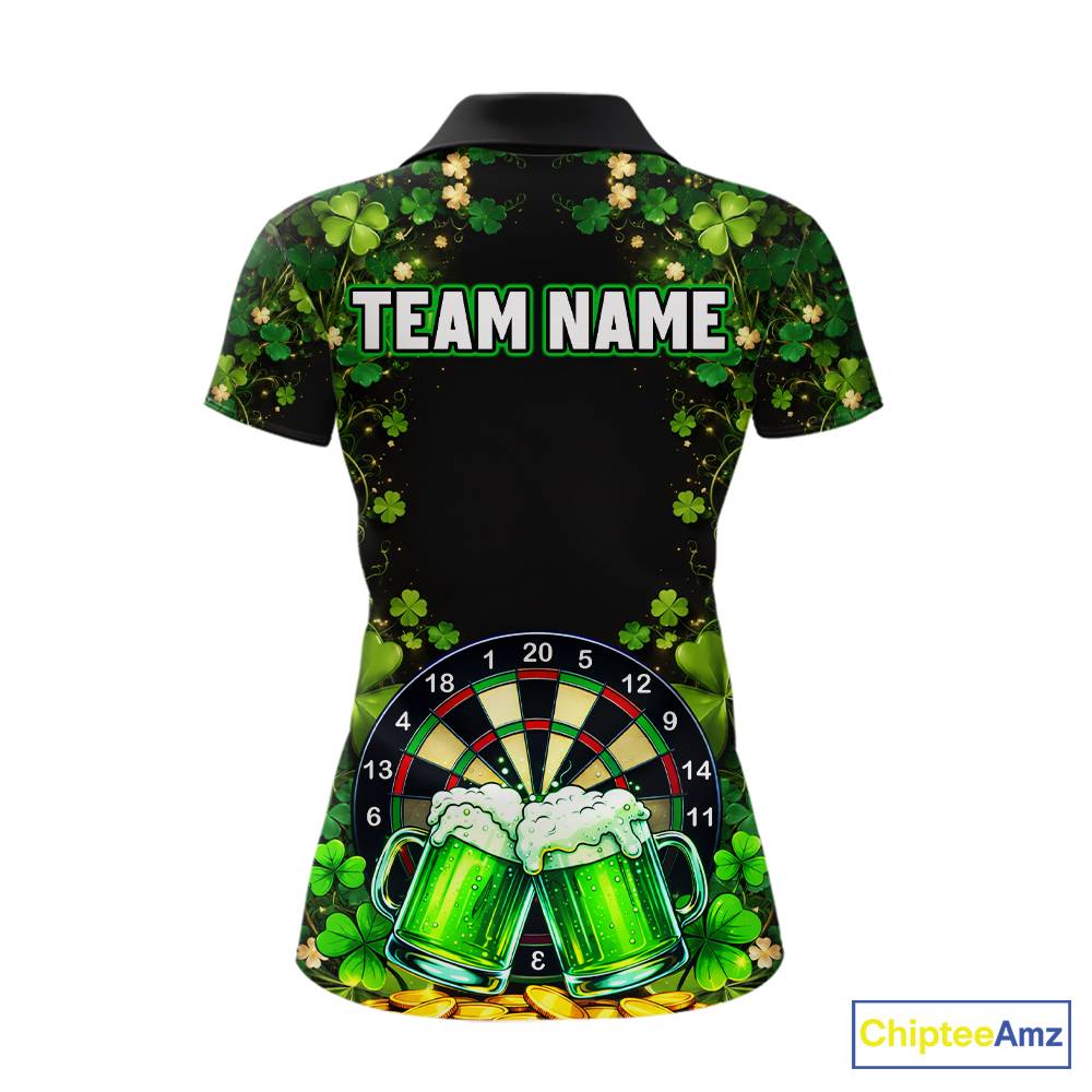 Cheer Beer & Play Dartboard Shamrock Women Darts Polo Shirt Custom St Patrick's Day Darts Jersey NYN2534