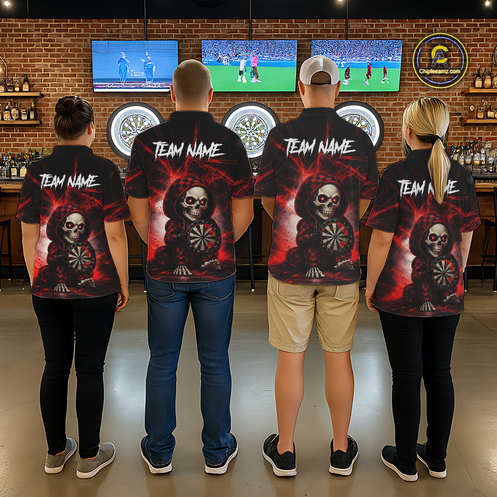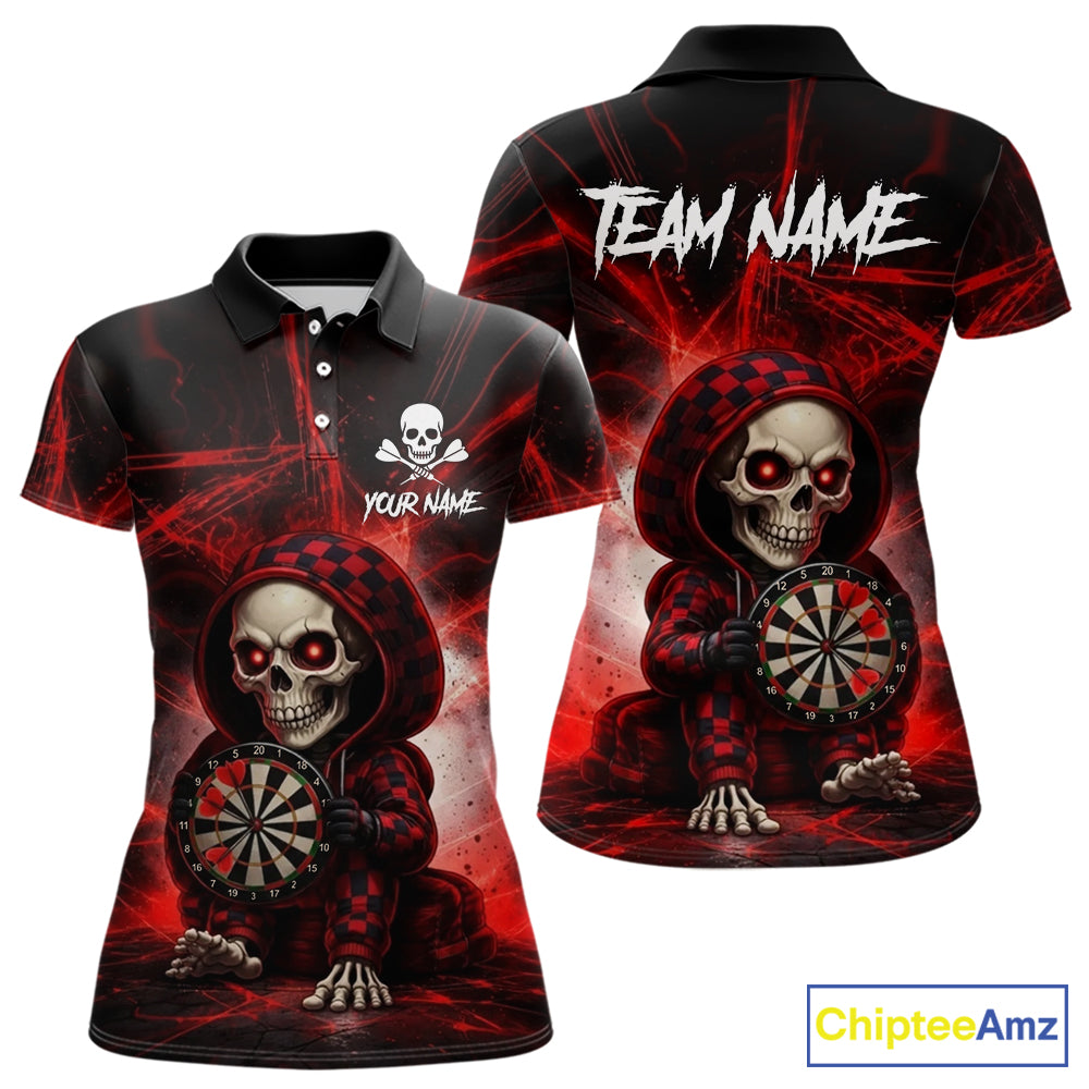 Black & Red Grunge Light Caro Skeleton Women Darts Polo Shirt Custom Funny Dart Team Jerseys NYN2539