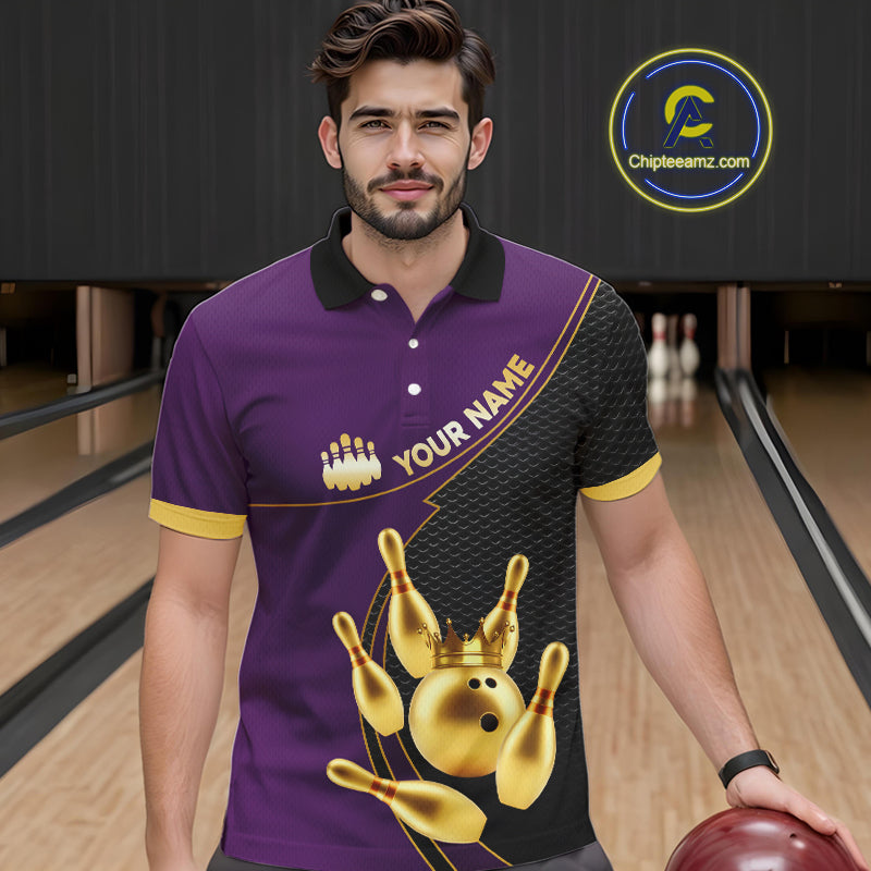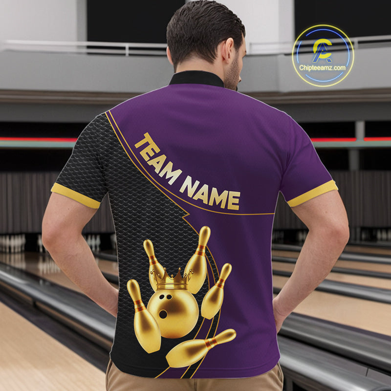 Purple and Gold Bowling shirts for men Custom Team Bowling Polo, 1/4 zip Shirt bowlers Outfit NQS10987