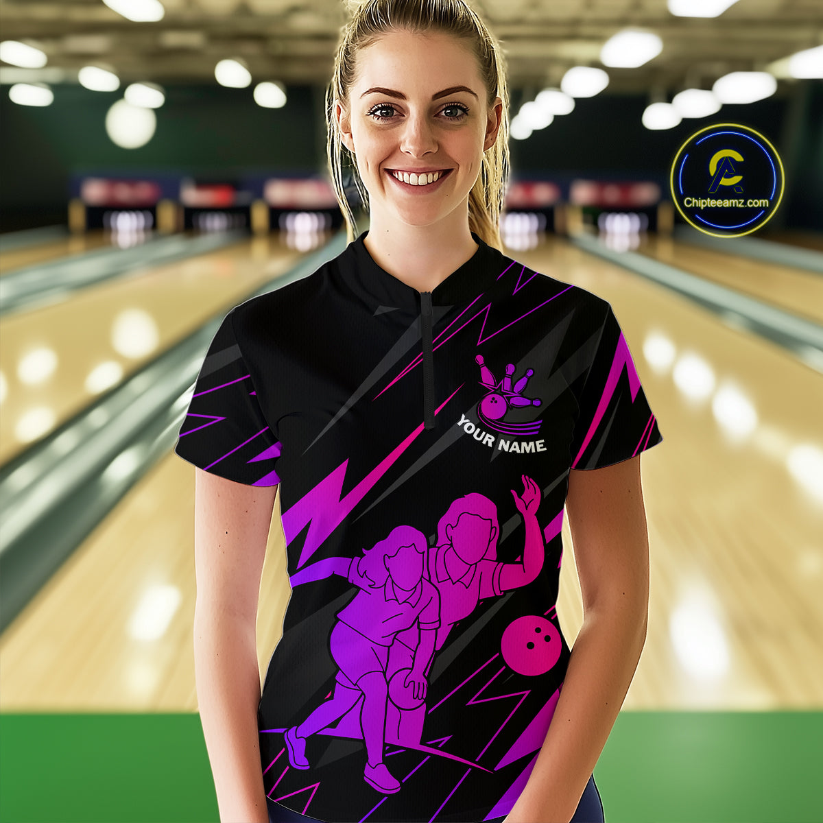 Purple Bowling Shirts for Women Men Custom Team Bowling Jerseys Personalized MBL175