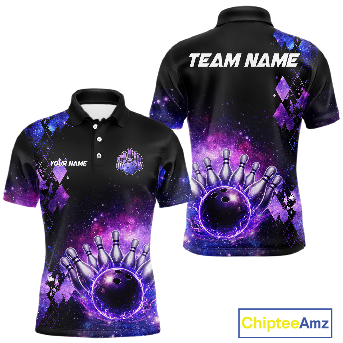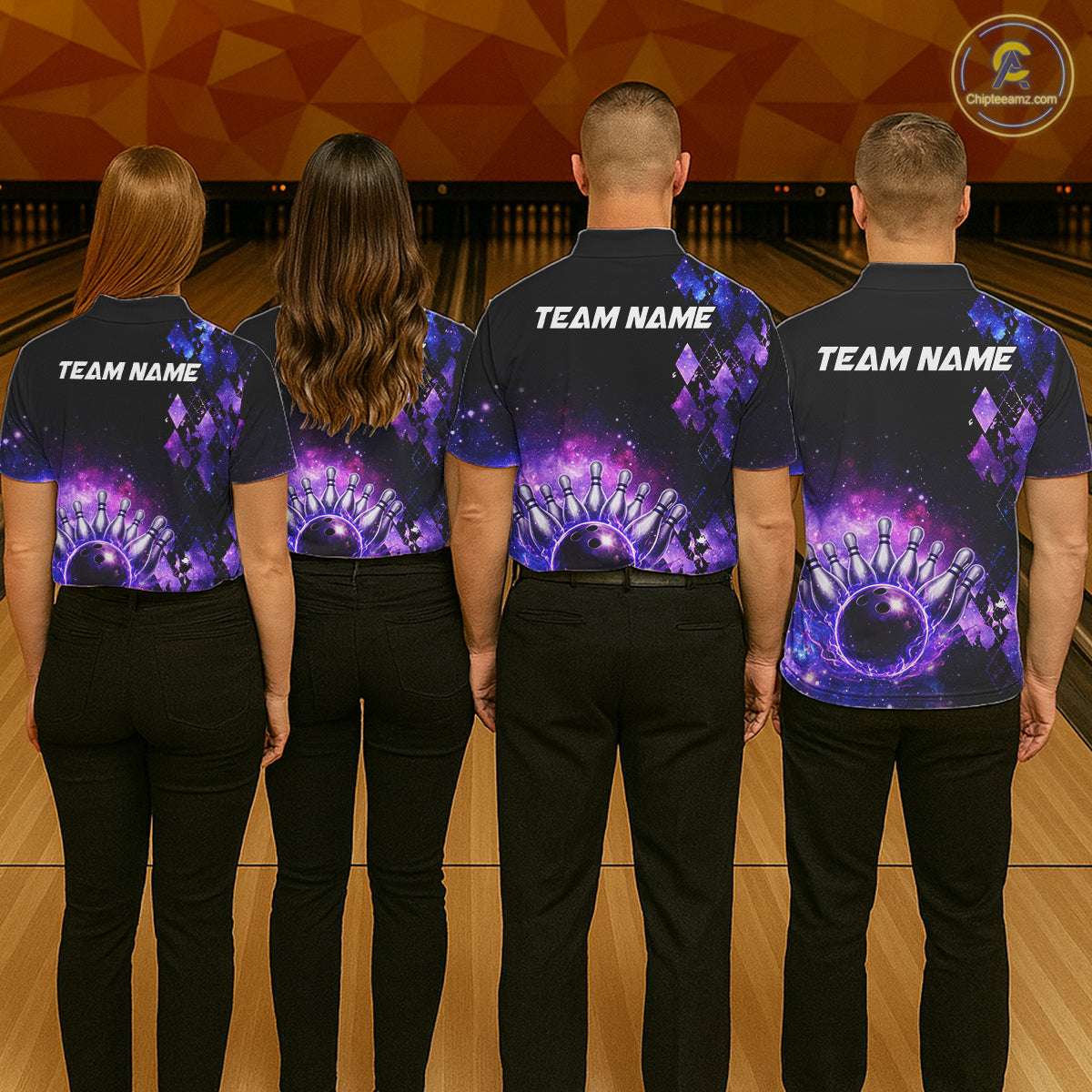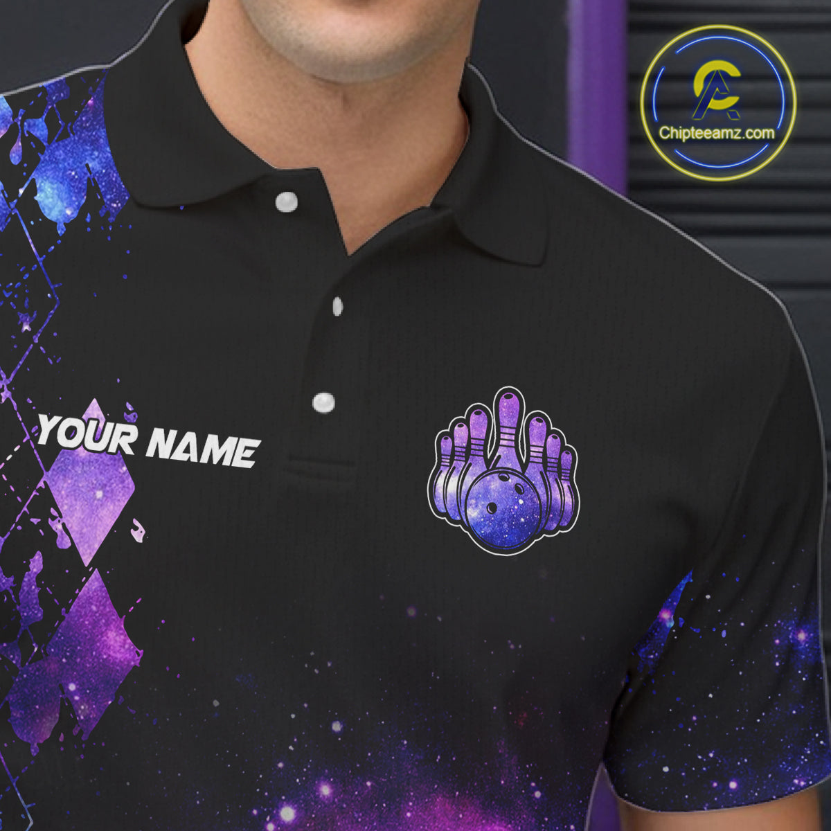 Purple Flame galaxy argyle Custom bowling polo shirts, 1/4 zip for men, team bowling league jerseys NQS11410