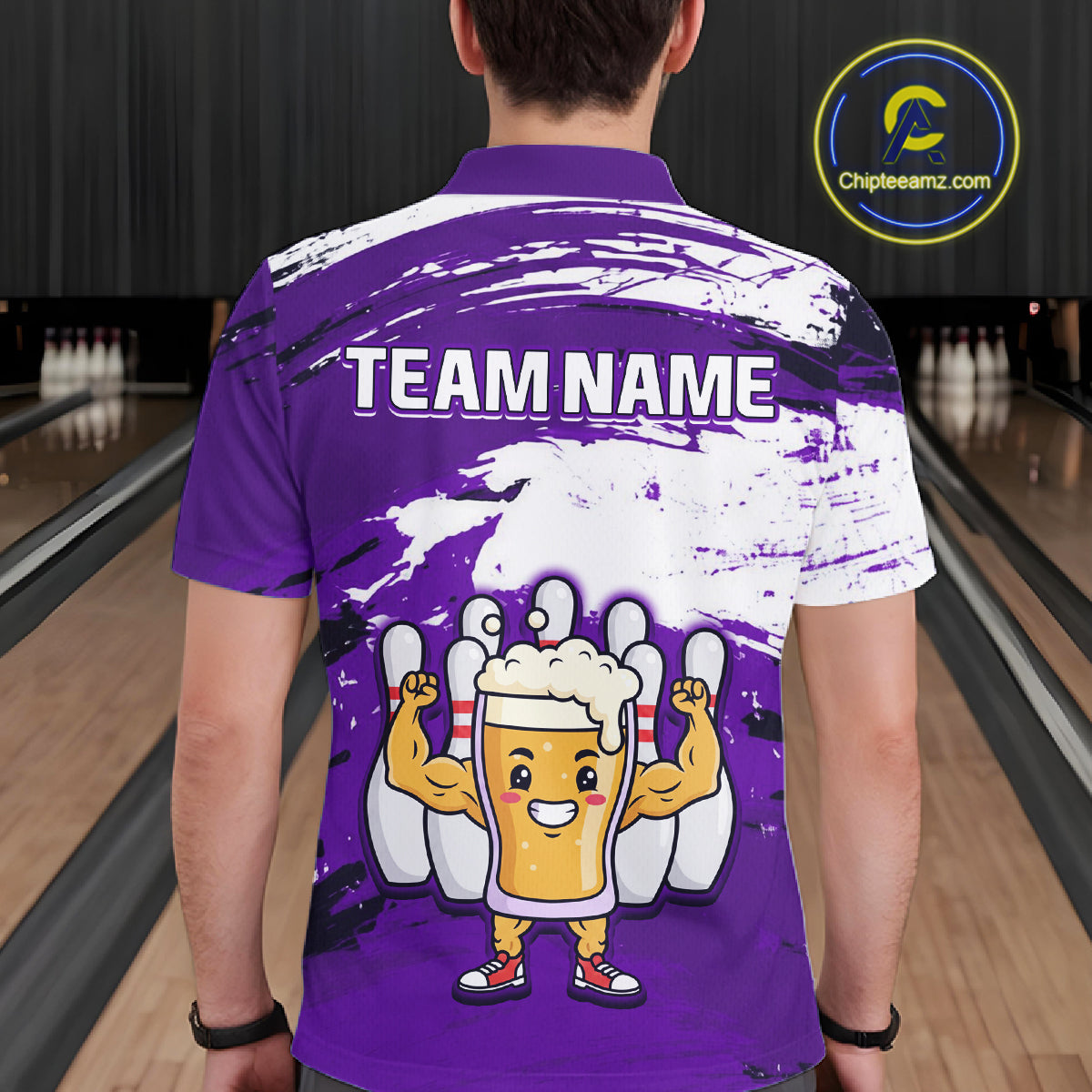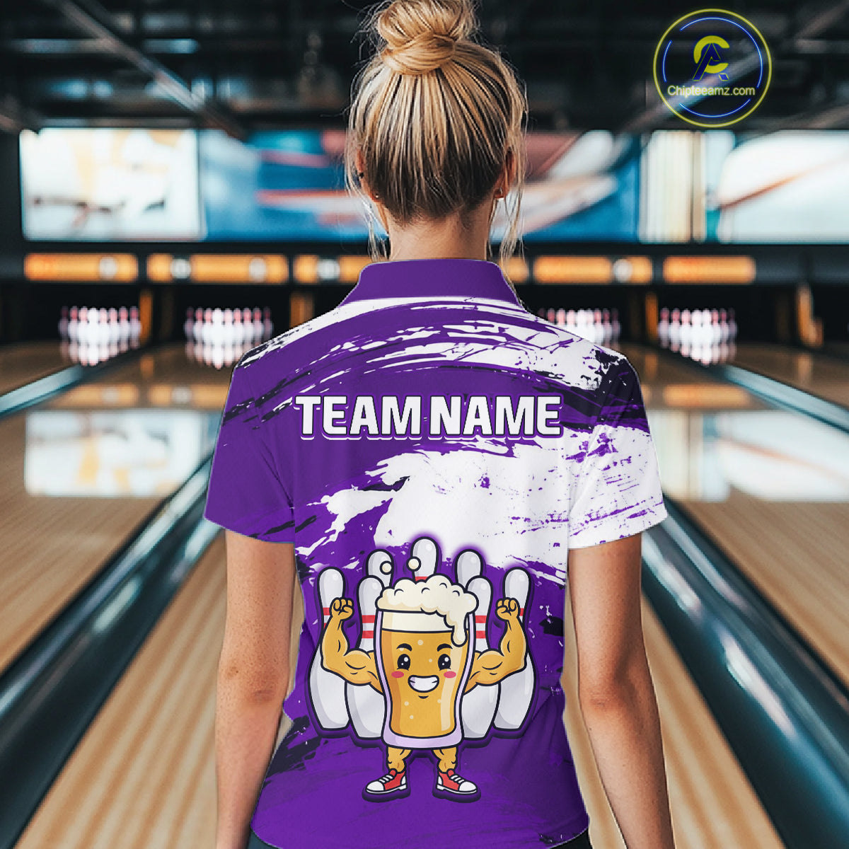 Purple Funny Beer Bowling Shirts for Women Men Team Bowling Polo&1/4 Zip Bowl League MBL253