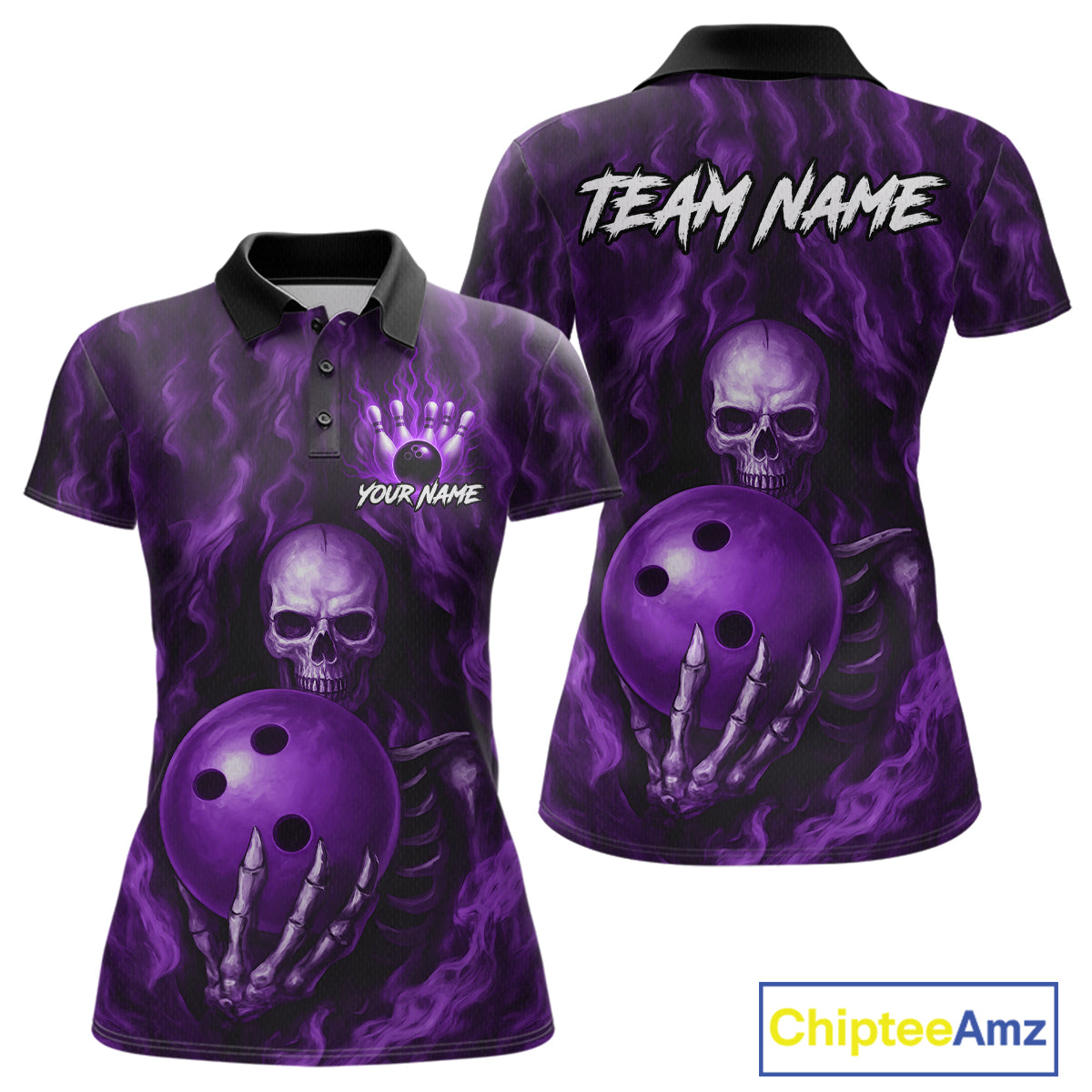 Purple Skull Bowling Shirts for Team Men Women Custom Bowling Jerseys for Bowlers MBL206