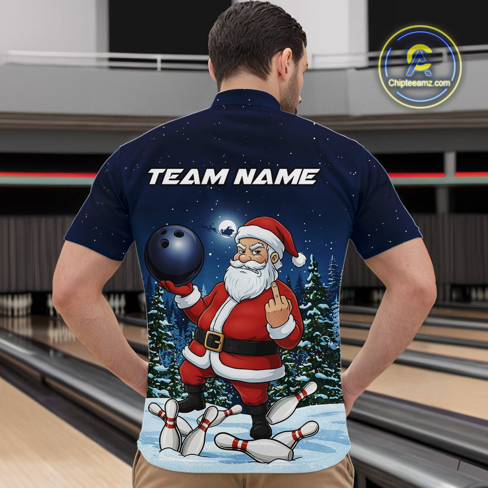 Custom Funny Christmas Bowling Men Quarter-Zip Shirts, Xmas Santa Bowling Team Outfit IPHW10094