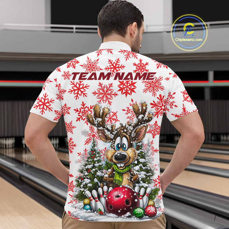 Custom Cute Funny Reindeer Christmas Bowling Men Quarter-Zip Shirts, Xmas Team Bowling Shirt IPHW10113