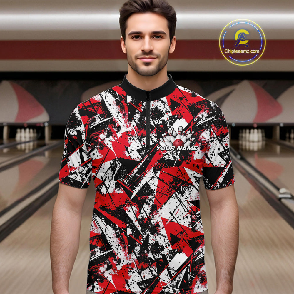 Custom Graffity Red Camo Bowling Team Men Quarter-Zip Shirts, Camouflage Bowling Jerseys IPHW10218