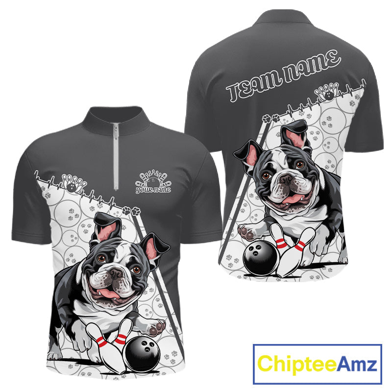 Custom Cute Funny French Bulldog Bowling Men Quarter-Zip Shirts, Dog Lovers Bowling Shirt IPHW10289