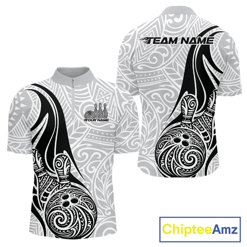 Custom Polynesian Tribal Bowling Men Quarter-Zip Shirt, Maori Style Bowling Shirt IPHW10336
