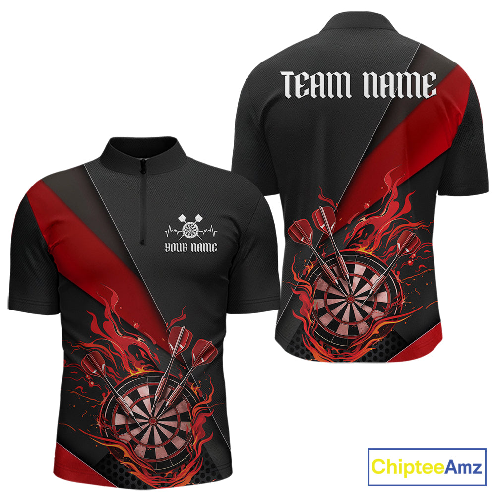 Custom Black And Red Flame Dartboard Darts Team Men Quarter-Zip Shirts, Darts Jerseys IPHW10373