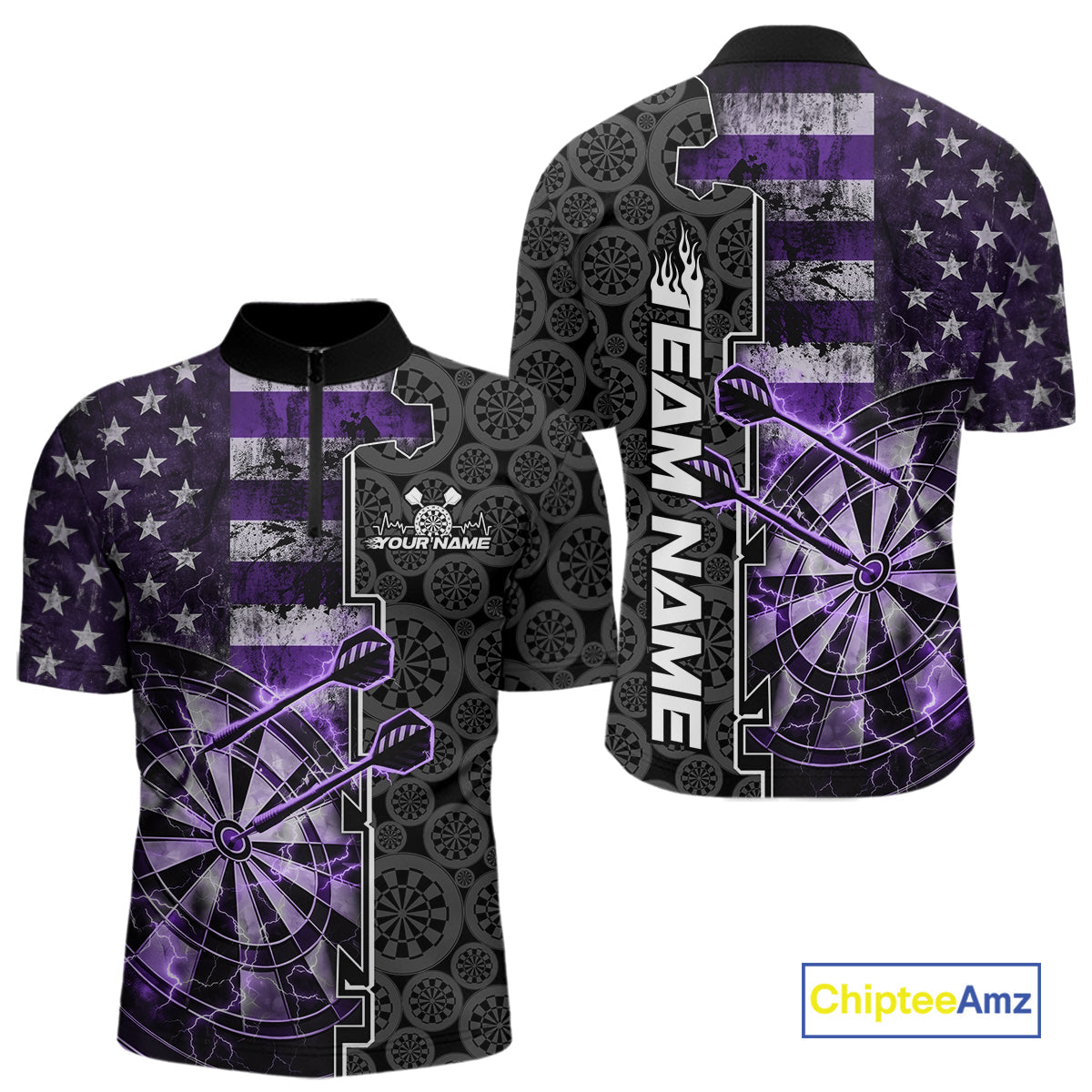 Custom Purple Lightning US Flag Dartboard Patriotic Dart Team Men Quarter-Zip Shirt Dart Jerseys IPHW10390