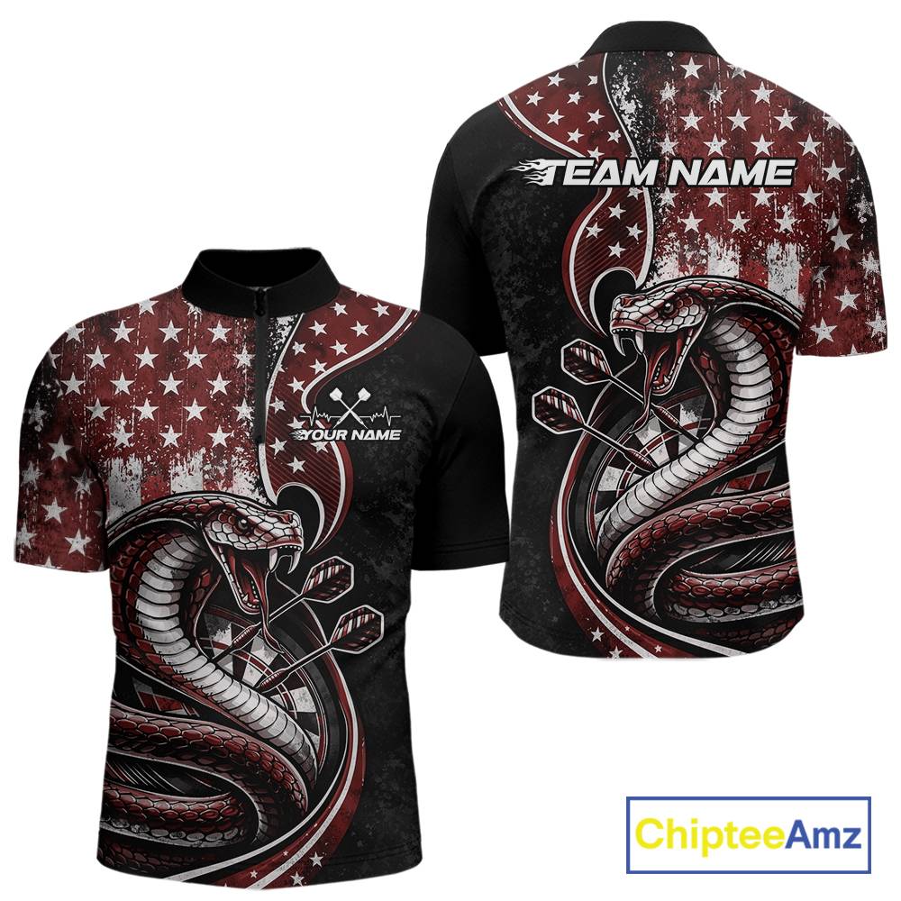 Custom Grunge Red US Flag Patriotic Cobra Snake Dart Men Quarter-Zip Shirt, Dart Jerseys IPHW10393