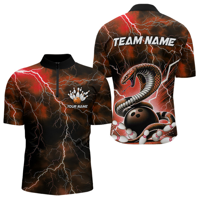 Orange Thunder Lightning Custom Cobra Snake Bowling Quarter-Zip Shirts For Men, Bowling Team Shirt IPHW8897