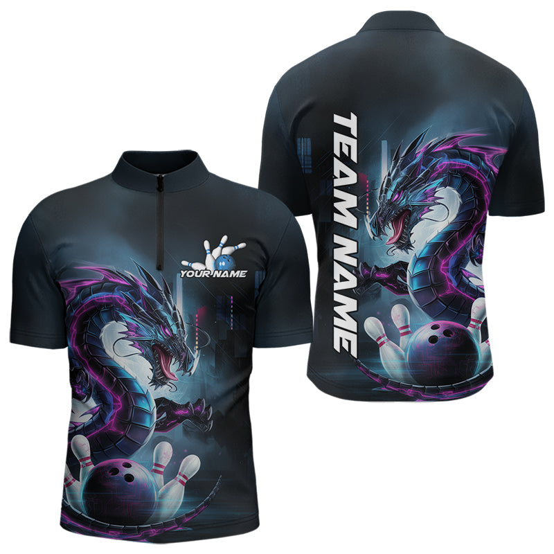 Custom Futuristic Style Dragon Bowling Quarter-Zip Shirts For Men, Dragon Bowling Outfits IPHW8914