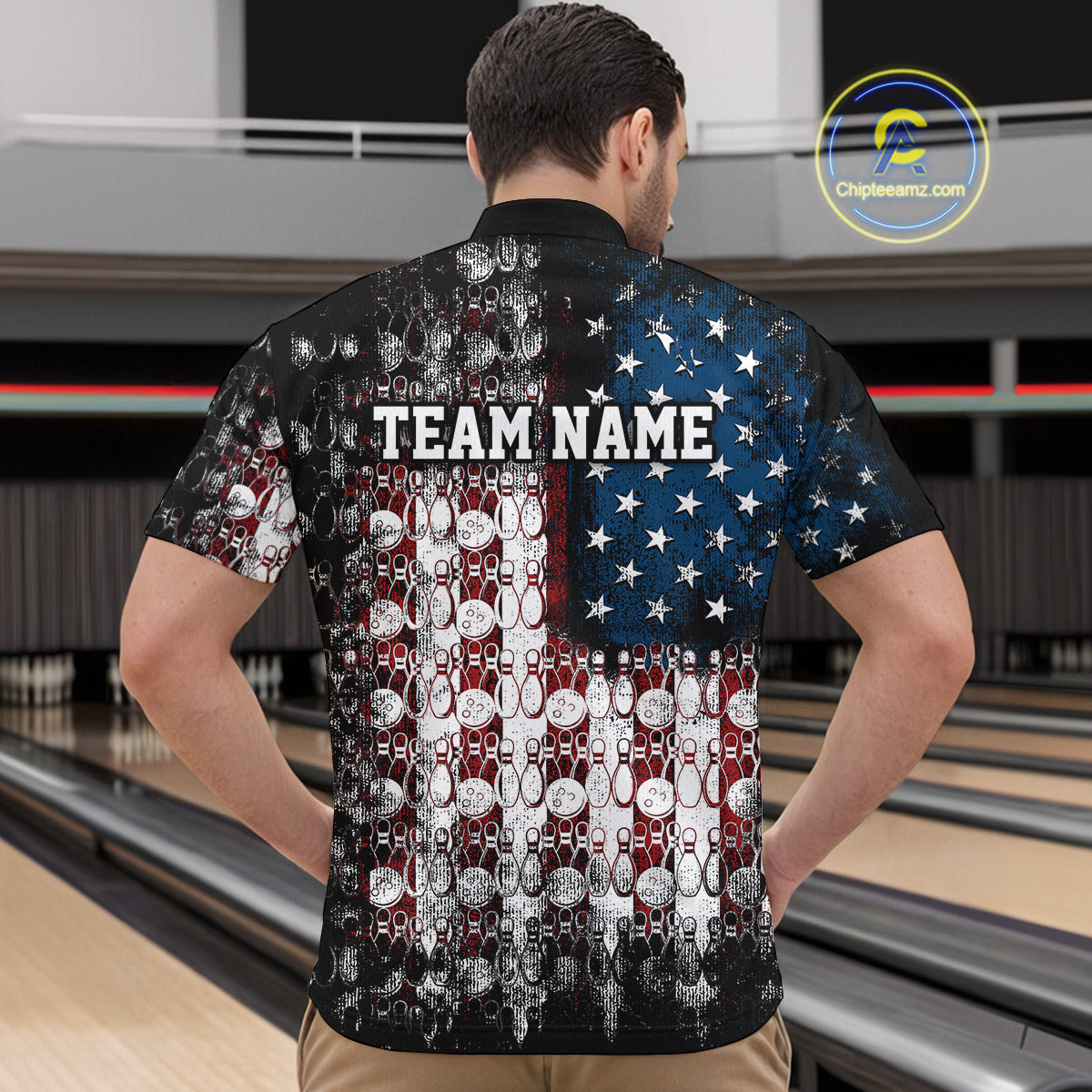 Custom Patriotic US Flag Bowling Men Quarter-Zip Team Shirts, American Bowling League Shirt IPHW9325