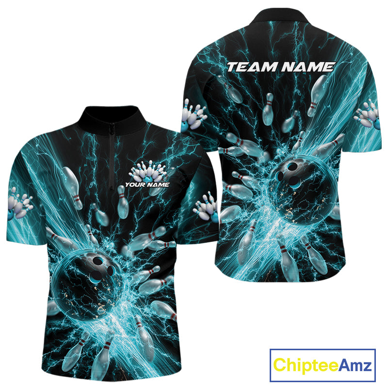 Custom Blue Thunder Lightning Bowling Team Men Quarter-Zip Shirts, Bowling Jerseys IPHW9742