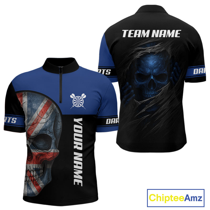 Blue Skeleton & Dartboard Custom Quarter-Zip Darts Shirt For Men - Darts Team Jersey NYN0701